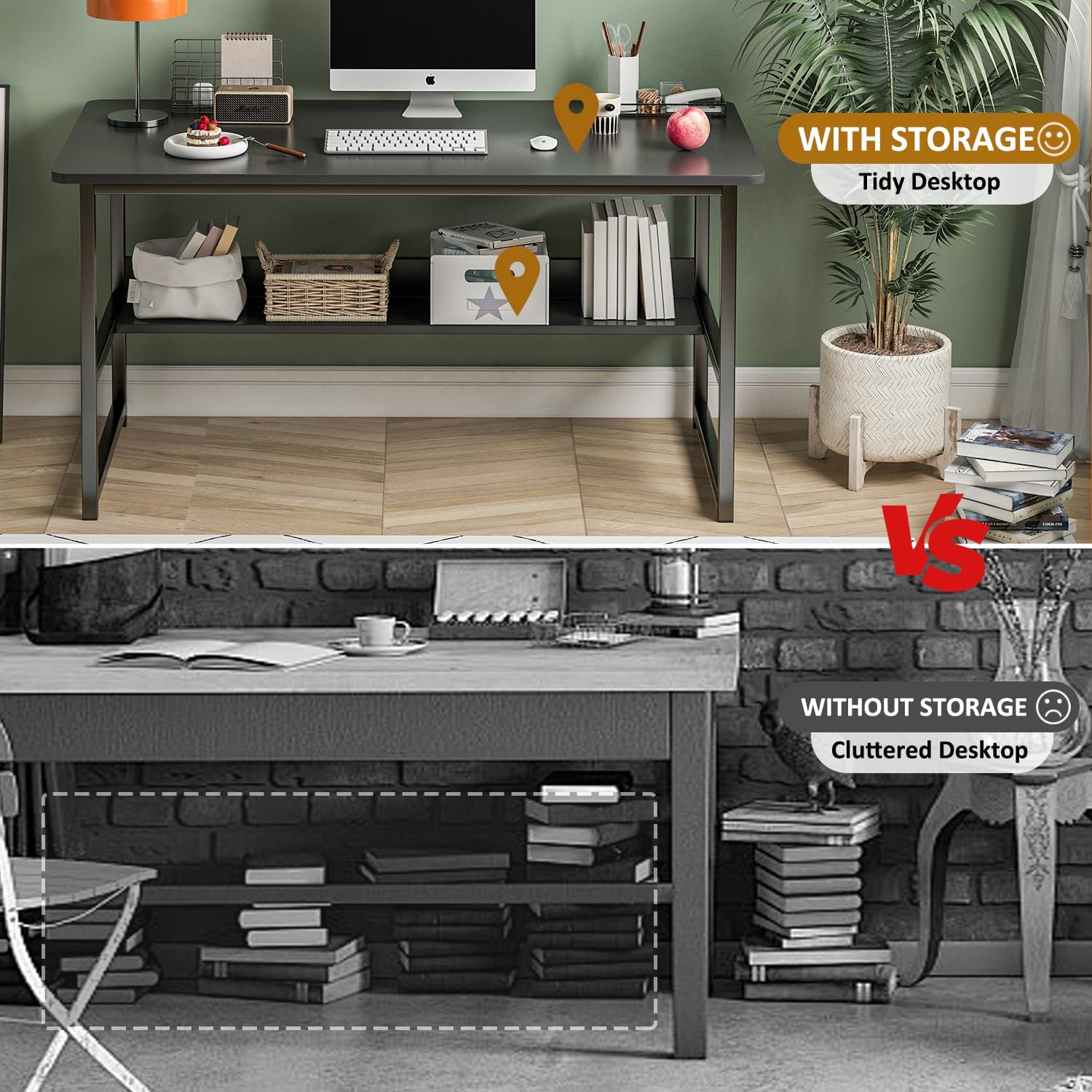 ✅ Under-Desk Shelf: Built-in under-desk shelf offers generous storage space for easy access to supplies, while providing plenty of leg room for comfortable long-hour use.