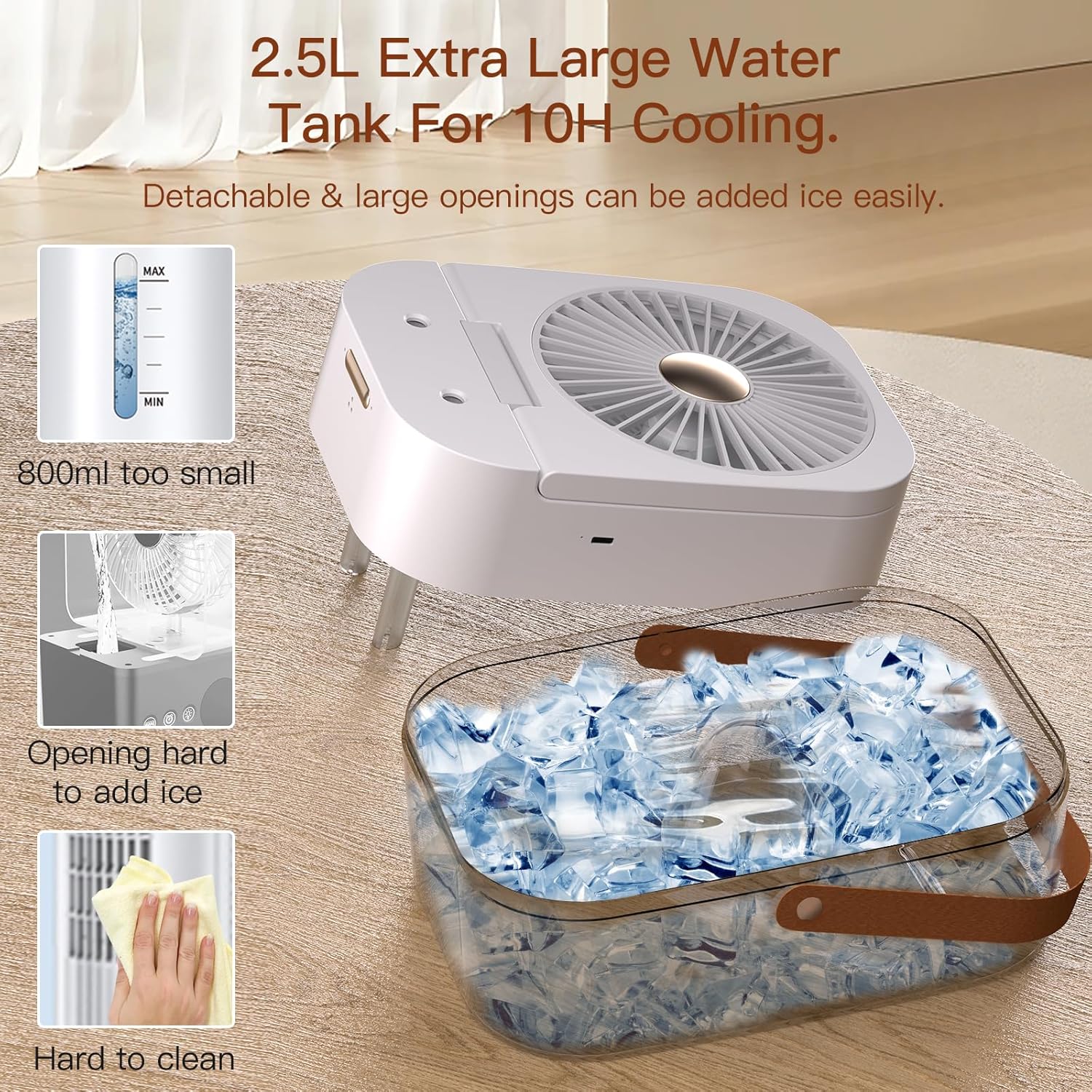 - �� 2.5L Extra-Large Water Tank: Enjoy up to 10 hours of cool mist. No frequent refills needed. Add ice for a refreshing blast.
