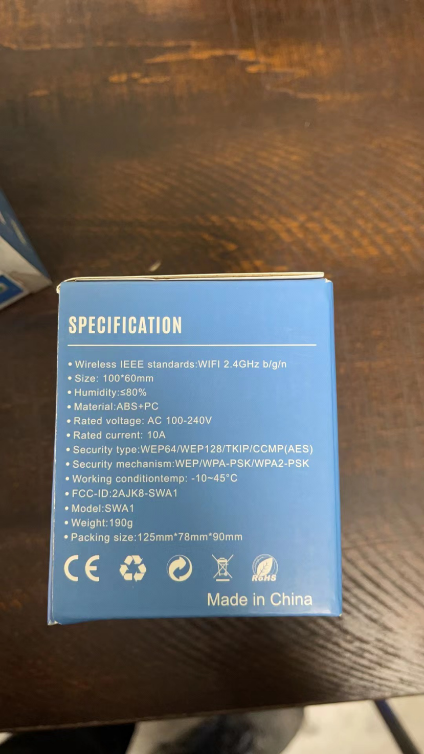 Brand New Smart Wifi Socket,Wireless IEEE Standards:WiFi 2.4GHZ b/g/n