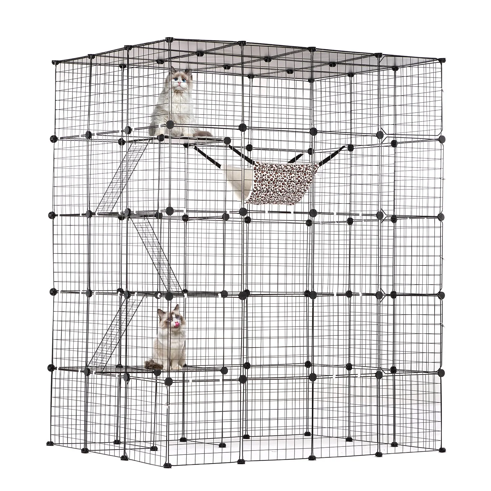 ✅ Sturdy & Secure Build: Premium metal wire with anti-rust powder coating (sturdy, anti-distortion). Thickened PVC boards prevent falls; reinforced latches + zip ties for stability. 1/2" wire intervals keep cats safe while climbing/jumping.