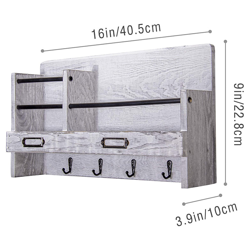 - Features round metal bars and gray pinewood boards for an industrial-rustic look, with 2 label slots for organized mail management.