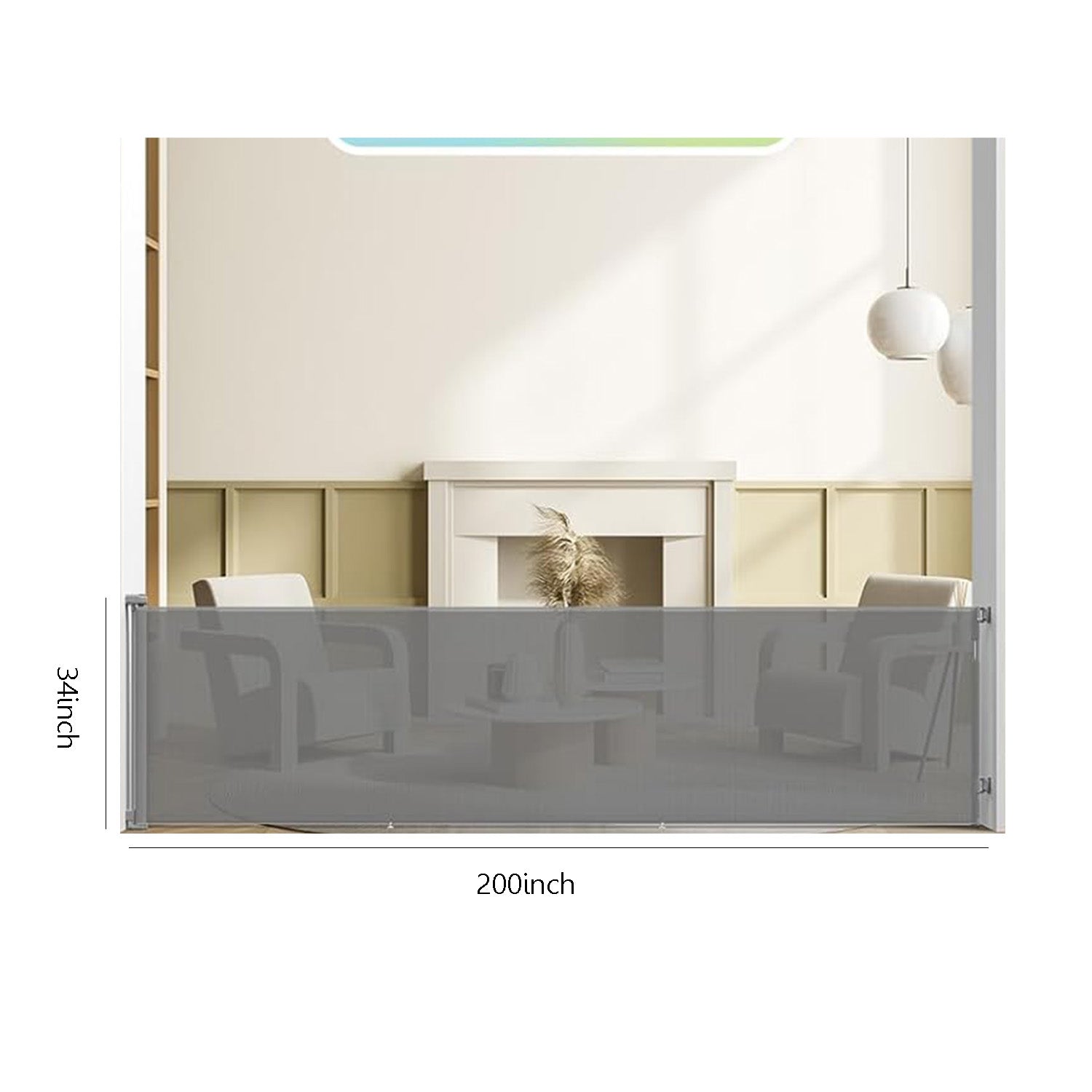 This retractable baby gate extends up to 200 inches wide and 34 inches tall, creating a safe zone for kids and pets. It blocks access to stairs, kitchens, and other hazardous areas effectively.