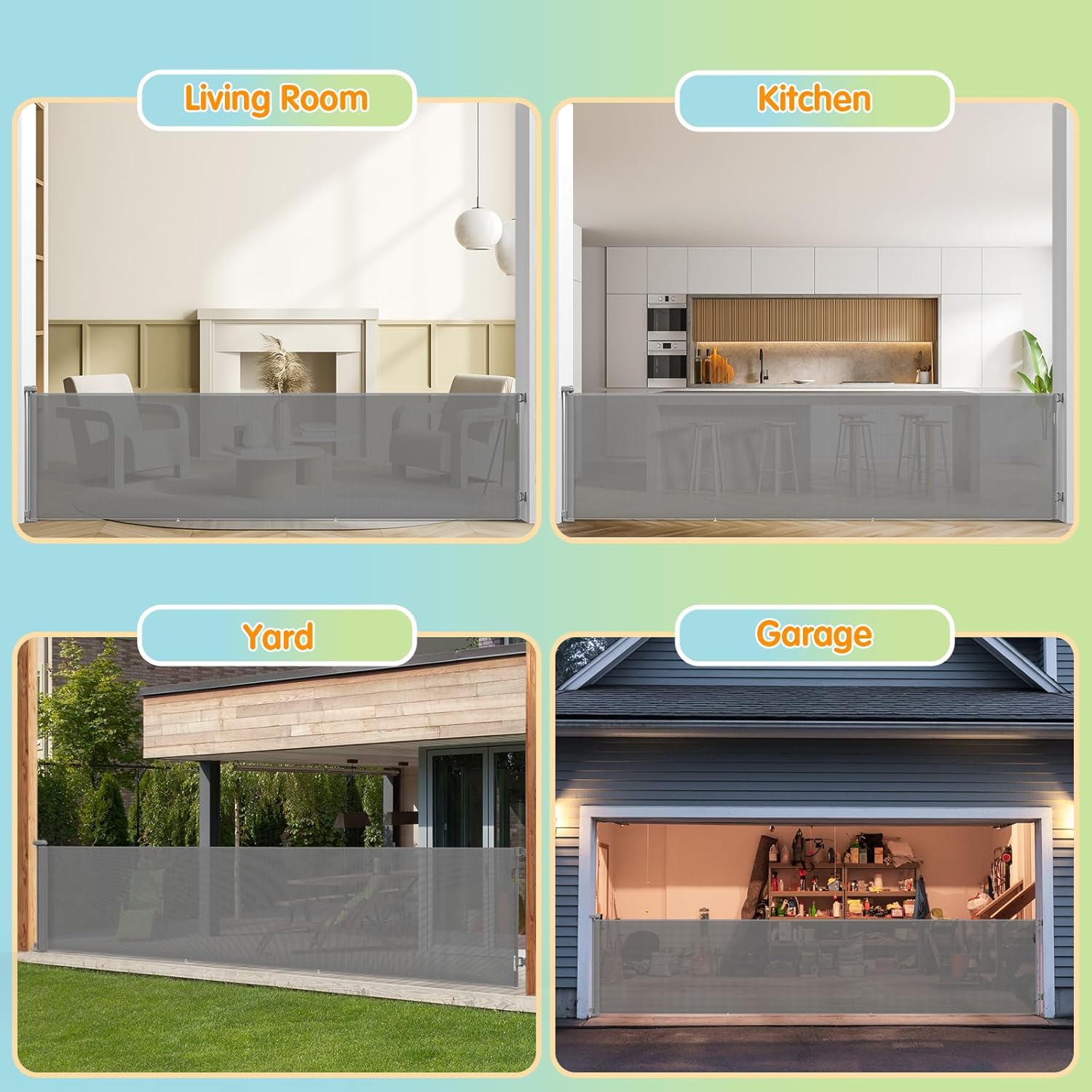 SpaceSaving Retractable Design:The gate retracts smoothly when not in use, saving space and blending nicely with home decor without looking bulky.