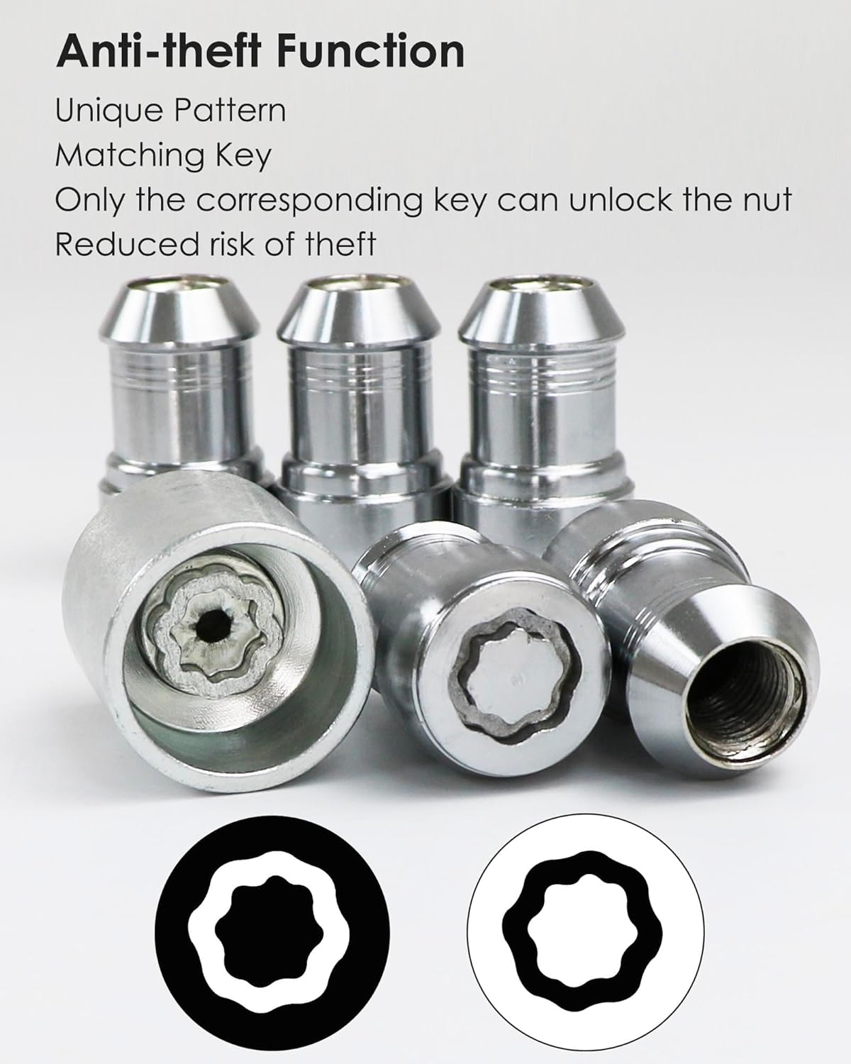 - This wheel lock kit uses specially designed wheel lock nuts, with each nut featuring a unique pattern and shape. Only the corresponding key can unlock them, effectively protecting the vehicle's tires and wheels from the risk of theft