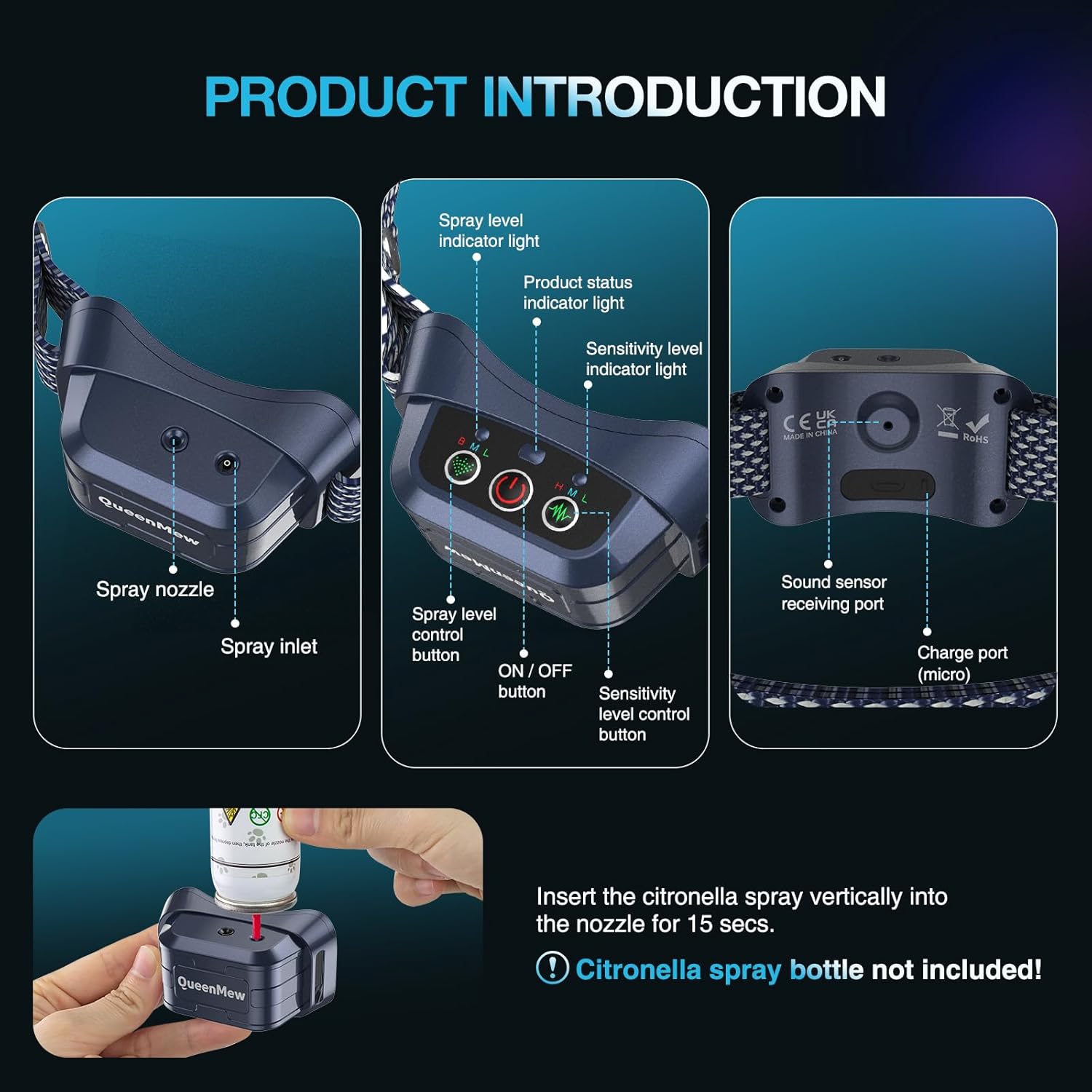 Beep Warning & Auto Spray: Features 3 sensitivity levels and spray volume settings. Includes a beep warning and automatic spray to train dogs progressively with no shock.
