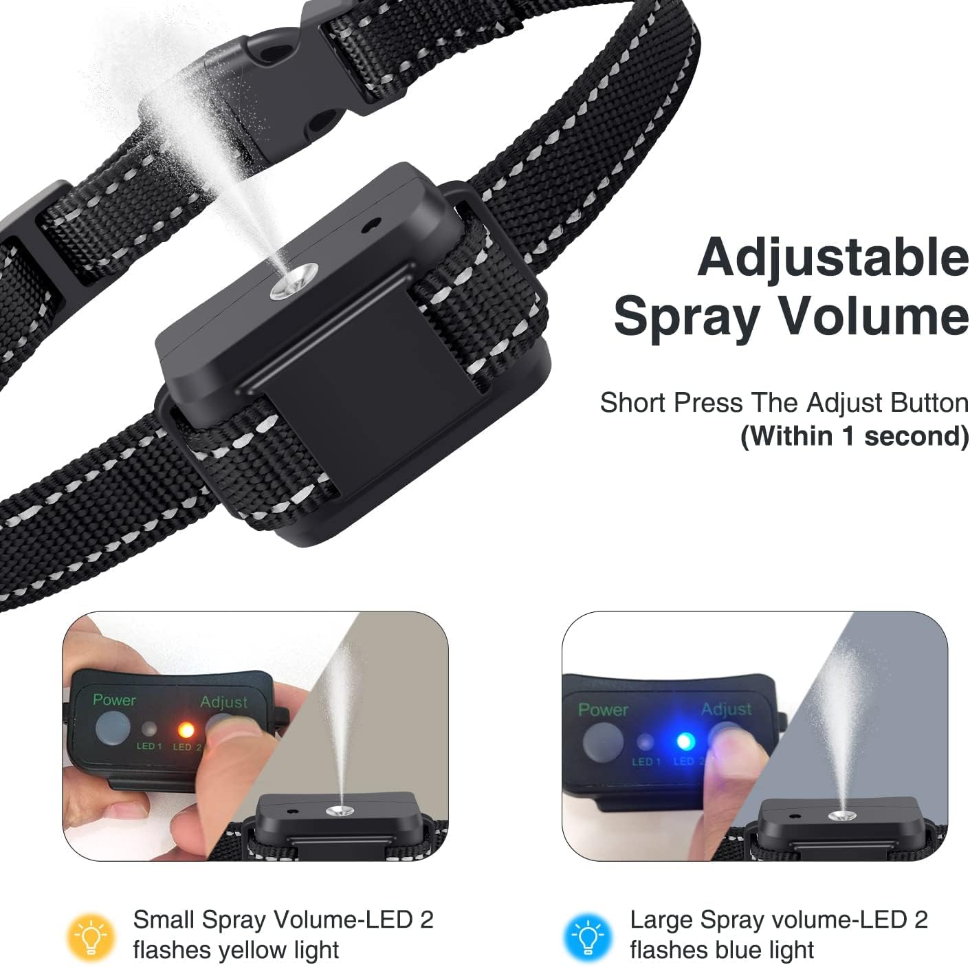 - Beep Warning & Auto Spray: 3 sensitivity and spray volume levels, with beep warning and automatic spray for progressive training.