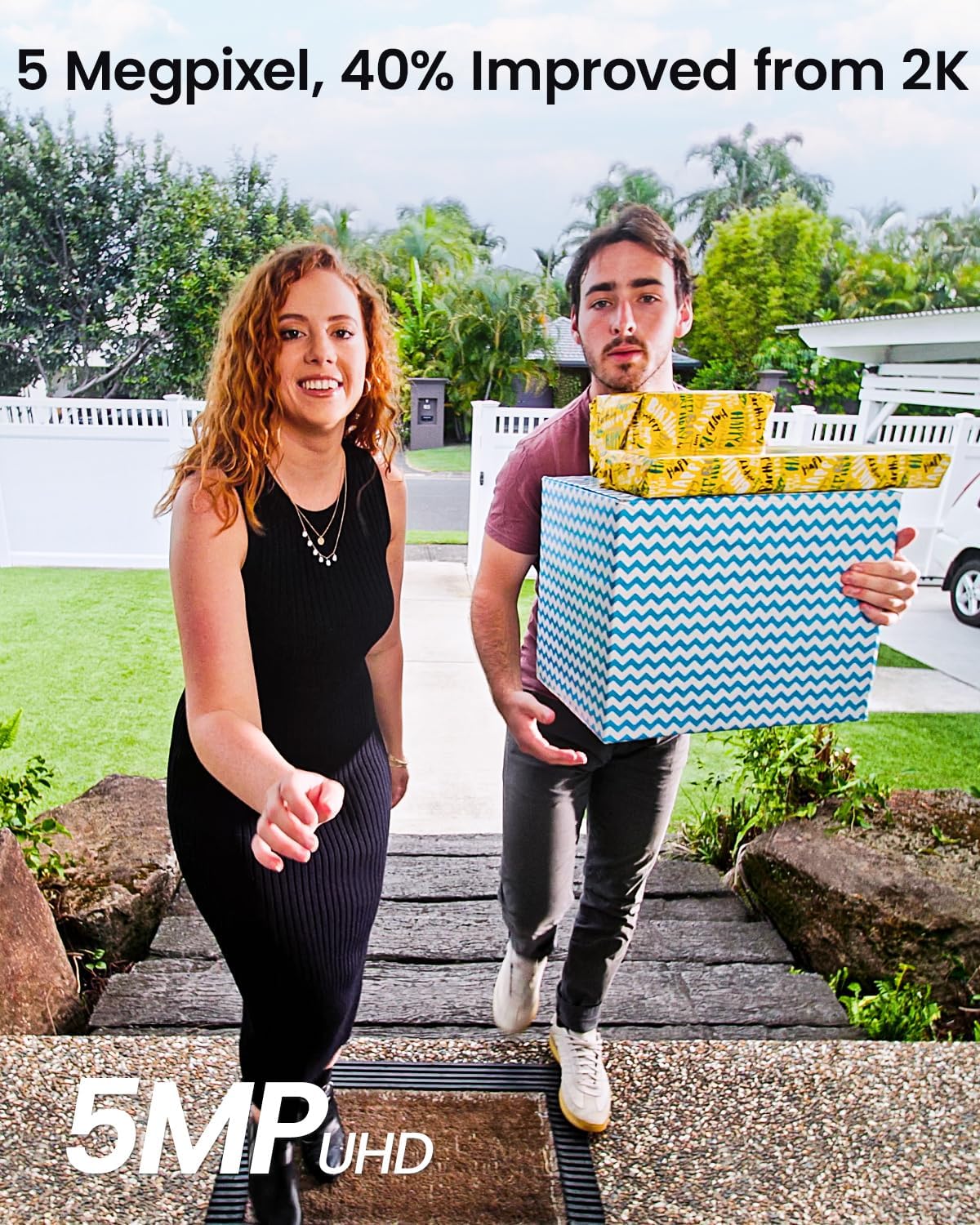 ✅ 5MP UHD, 40% Improved From 2k: Adopted 7 pieces of an advanced ultra-clear optical glass lens with WDR ensures you get sharp, detailed images even in low-light or bright conditions.