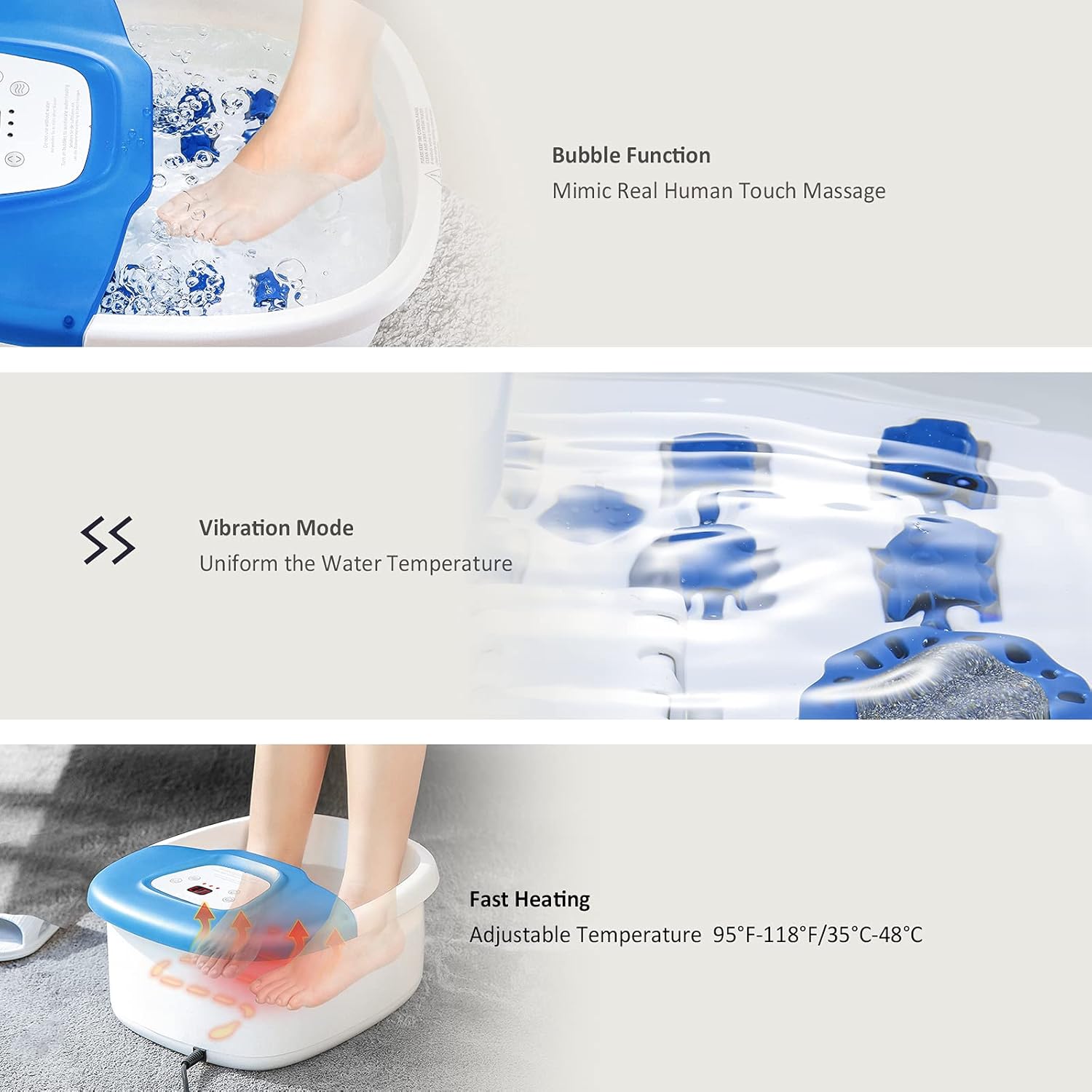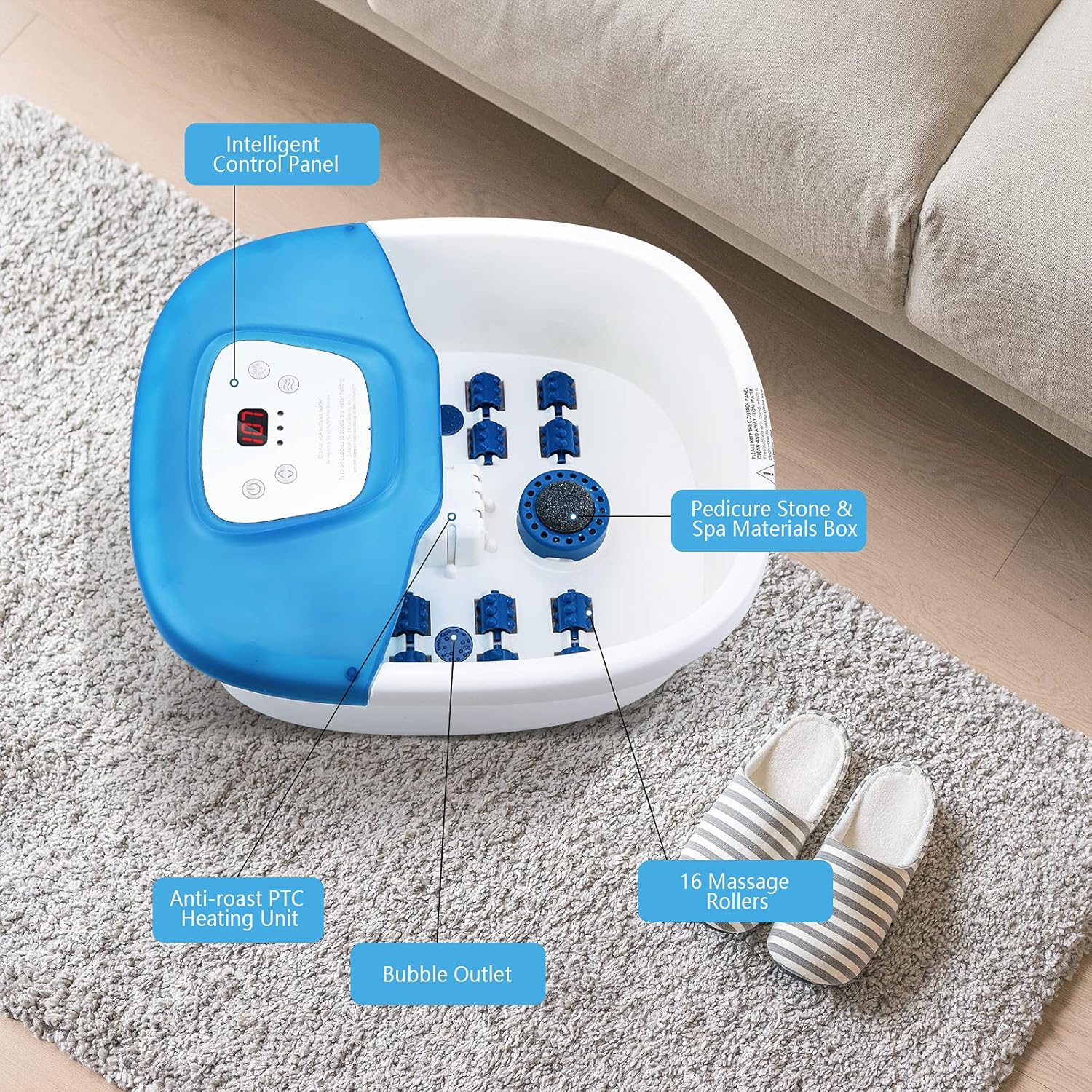 BNIB-Foot Spa Bath Massager with Fast Heating,Pumice Stone, and 16 Removable Massage Rollers,