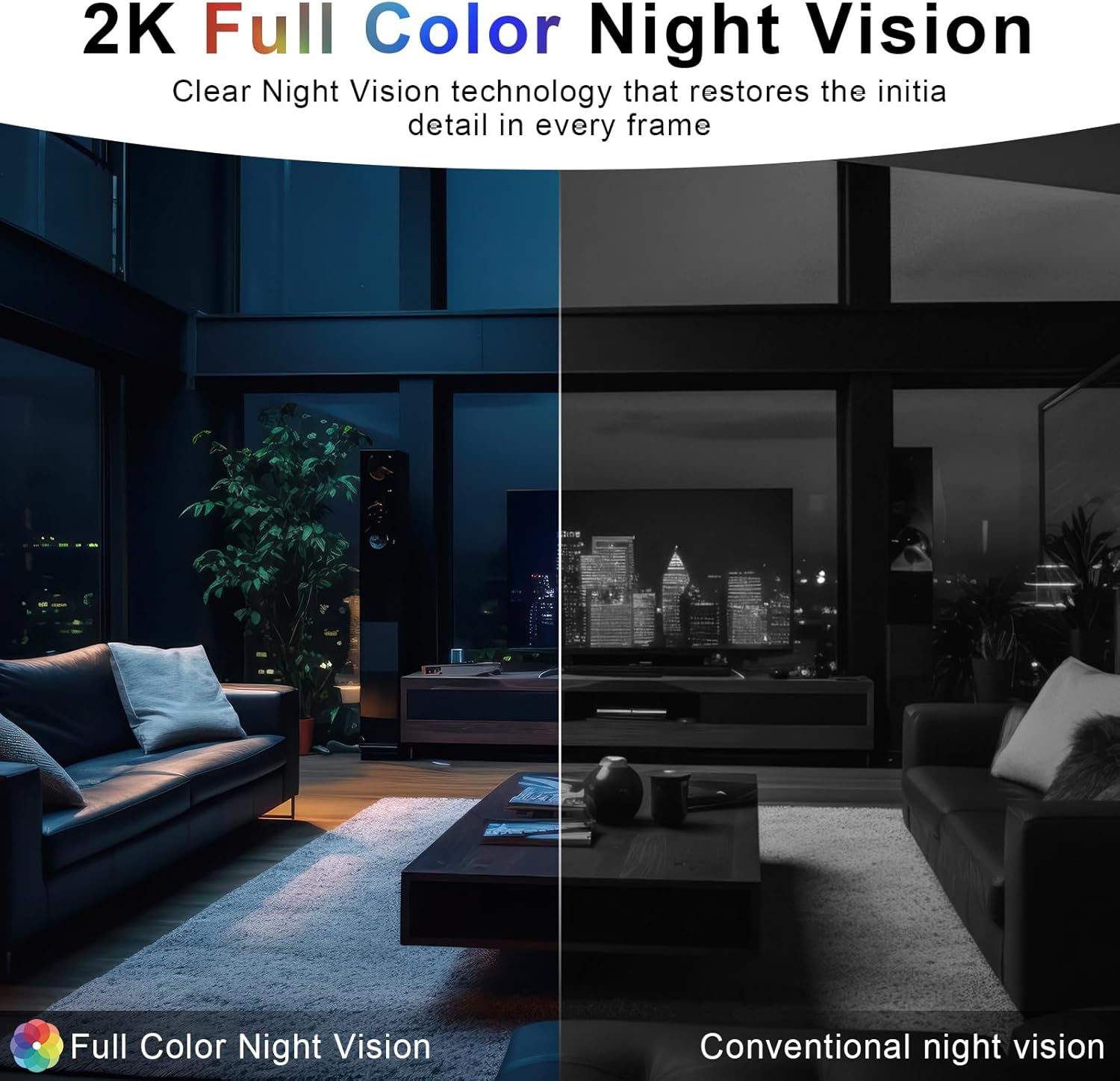 ✅2K HD & Color Night Vision for clear video in low light (up to 3 feet).