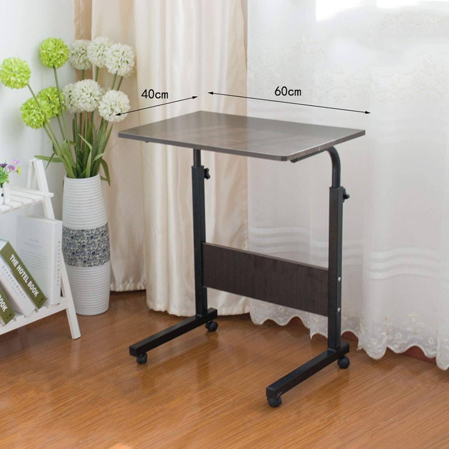 BNIB-Movable Side Table/Laptop Desk for Bed/Sofa, w/Adjustable Height & Lockable Wheels-Black Walnut