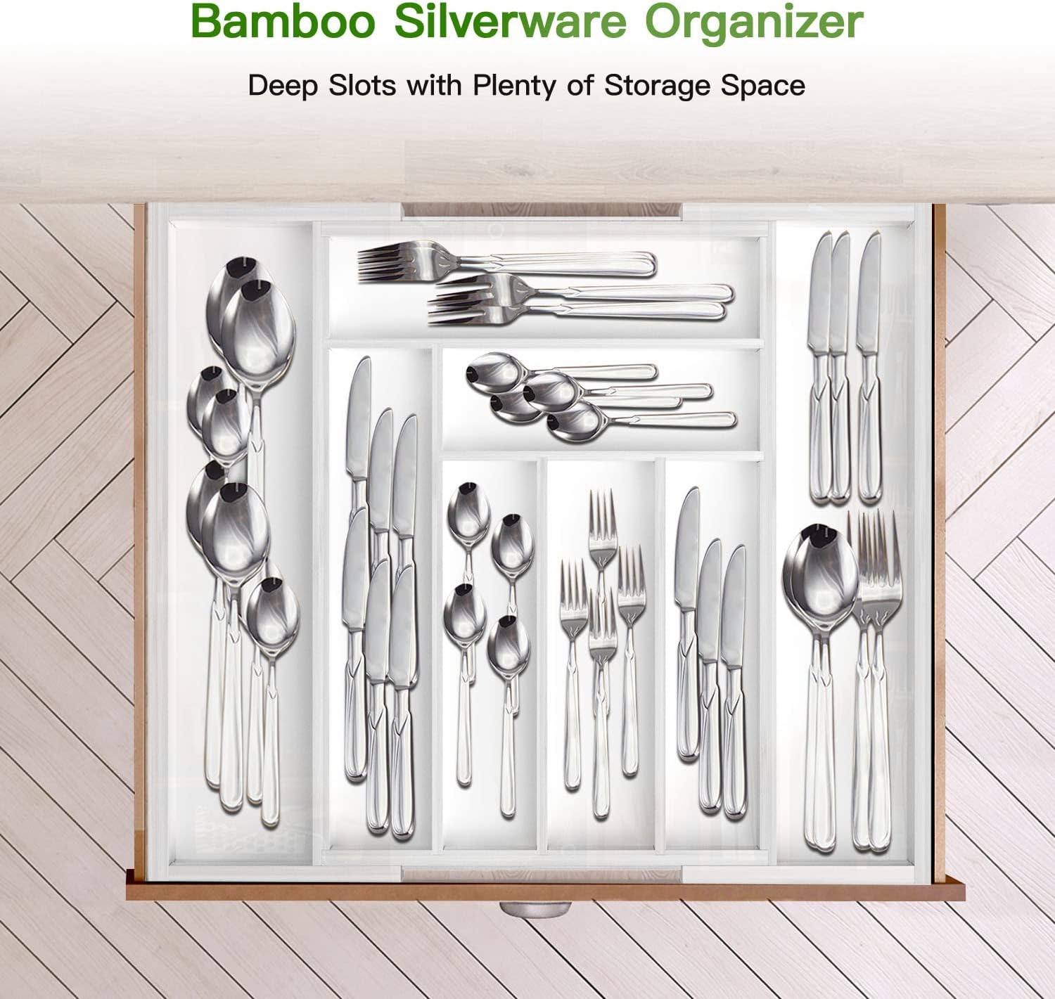 BNIB-Pipishell Bamboo Expandable Drawer Organizer for Utensils Holder, Adjustable Cutlery Tray,(White)-$20