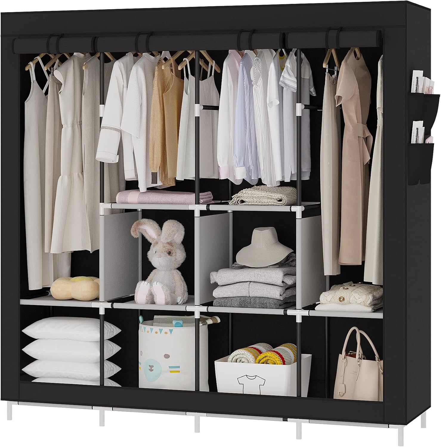 BNIB-Portable Closet Large Wardrobe Closet Clothes Organizer with 6 Storage +4 Hanging + 4 Side Pockets,Black