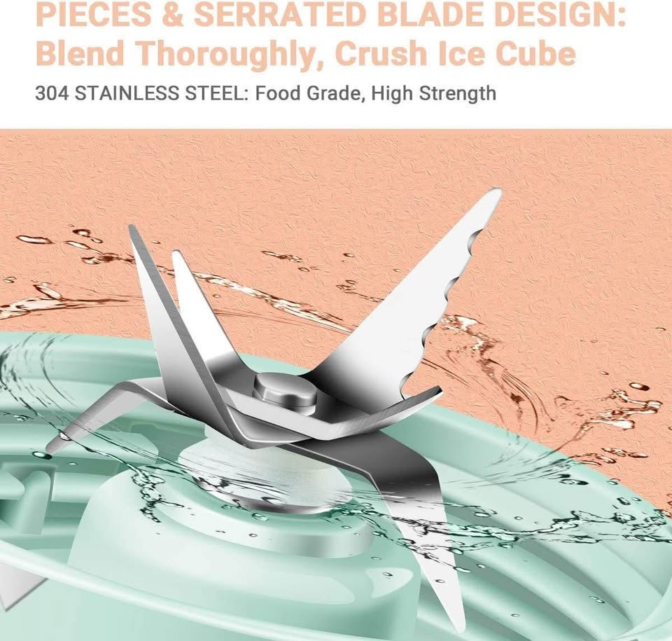 - 6-Blade Design: Made of 304 stainless steel, the 6-leaf blades easily crush fruits and veggies for a finer texture.