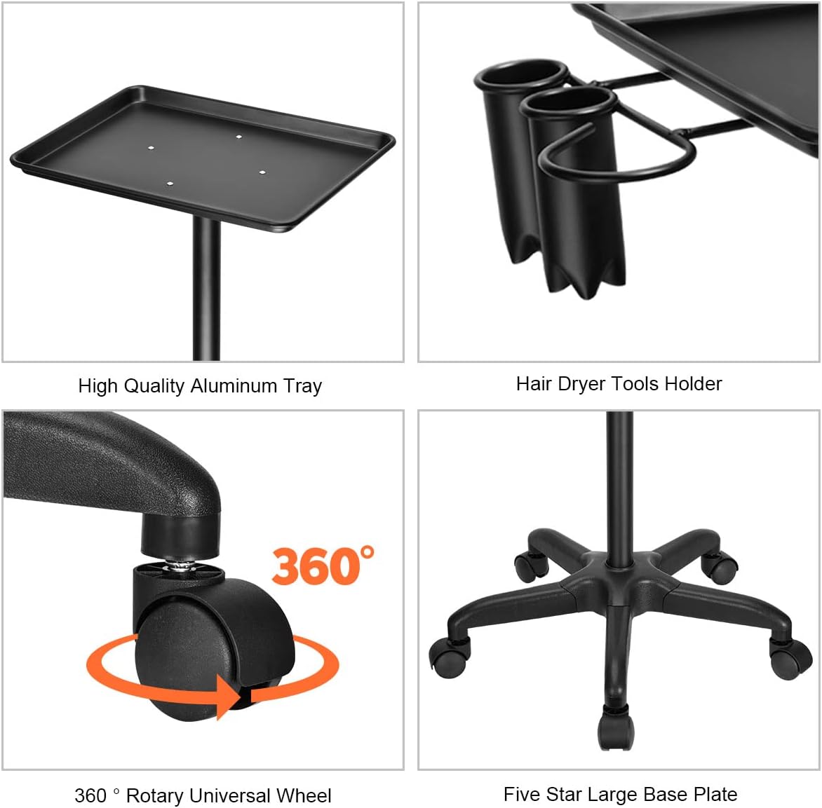 ✅ Comes with an insert for hot tools holder and blowdryer, the sturdy 5-star base maintains the stability of the trolley, the casters can rotate 360 degrees flexibly, and 5pcs swivel casters realizes easy direction and ultimate mobility around the work area.