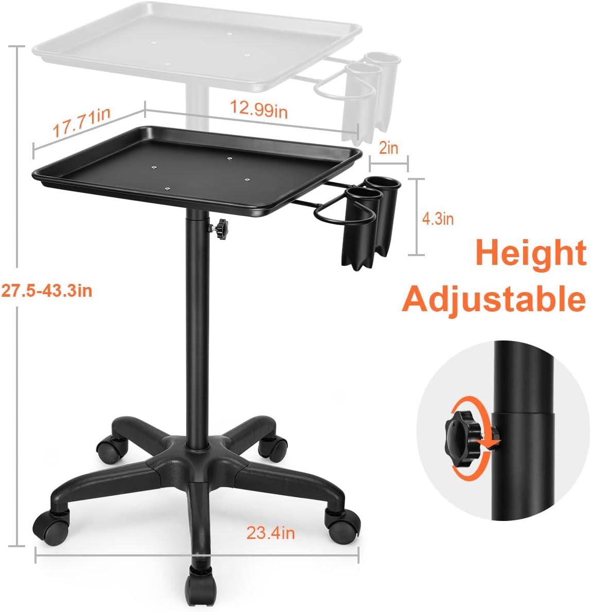 ✅ The instrument trolley tray features 1 tension knob on pedestal, which makes the height fully adjustable from 27.5" to 43.3", which can meet the different needs of various jobs and people.