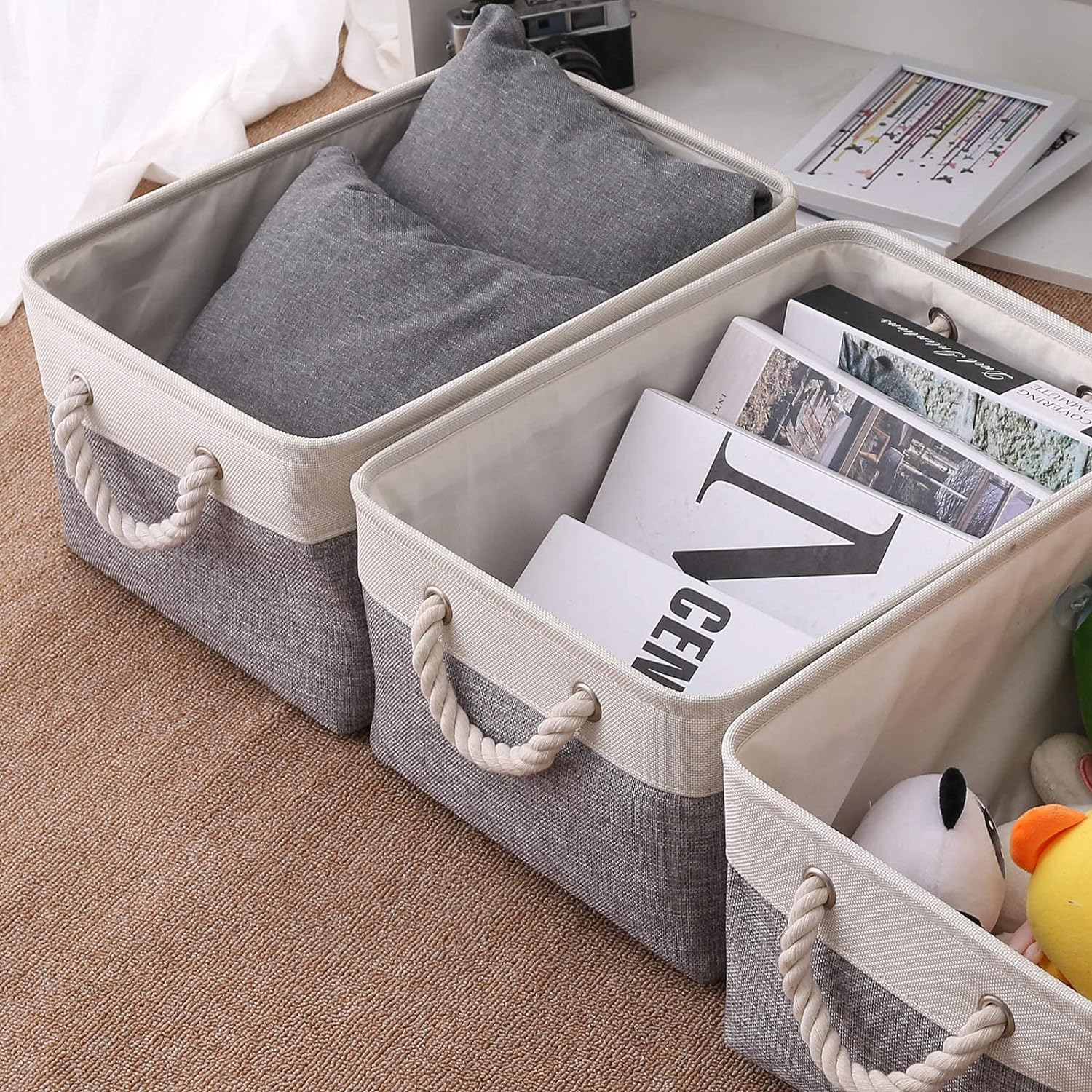 - Fabric storage bins outside fabric is made of more durable linen & thicken Environmental EVA, and used a lining material for the inside, Semi handmade stitched.Strong seams and rope side handles, make this storage baskets are sturdy and easy to grab.Stand up great on their own even unfilled and ensure a greater product lifespan.