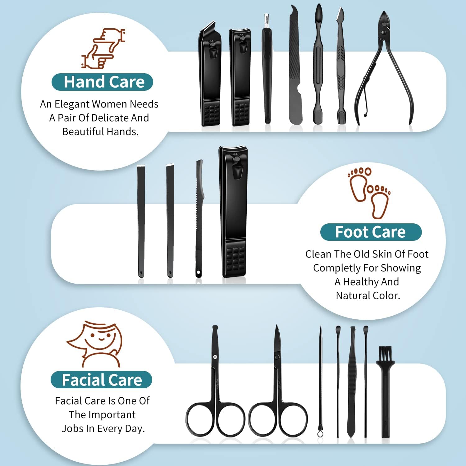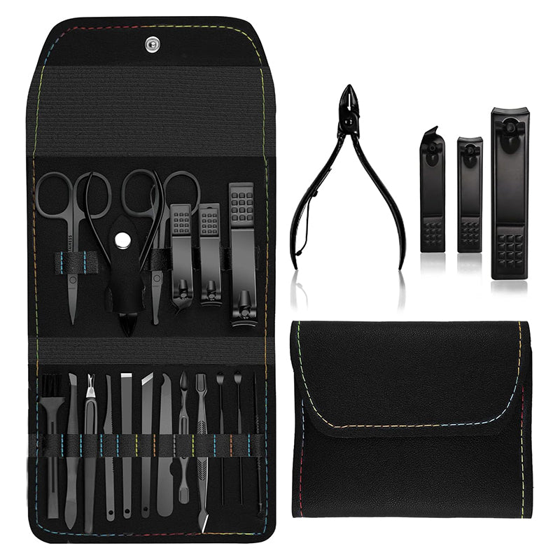 [BNIB] SUBESING 18-Piece Professional Manicure Set,Stainless Steel Manicure Kit Nail Care-(Black)-$15