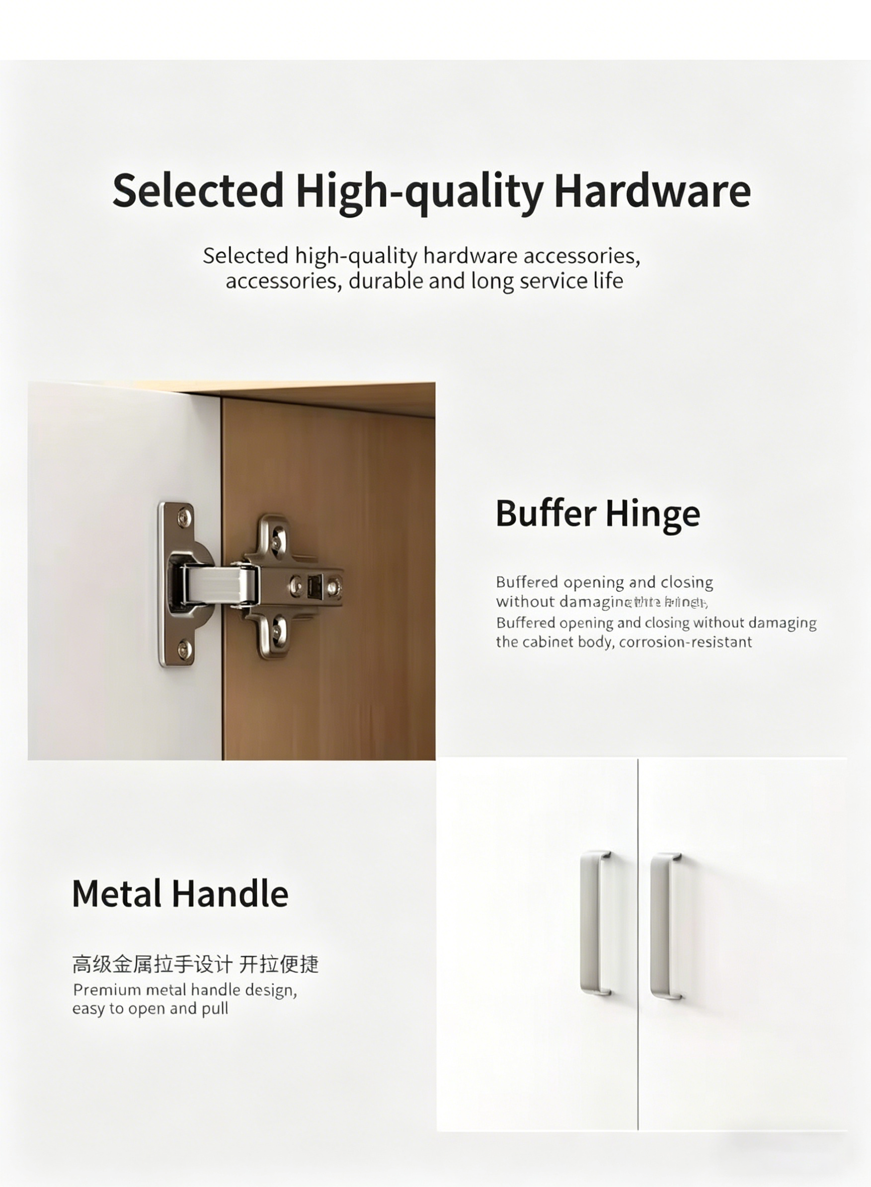 ✅ Premium Metal Handles & Soft-Close Hinges: Smooth, easy operation with a soft-close design that protects the cabinet body, corrosion-resistant for durable performance
