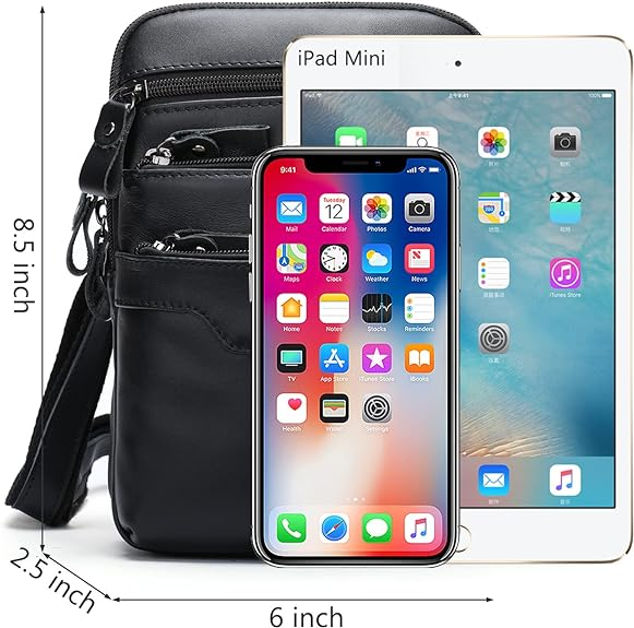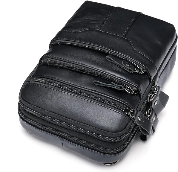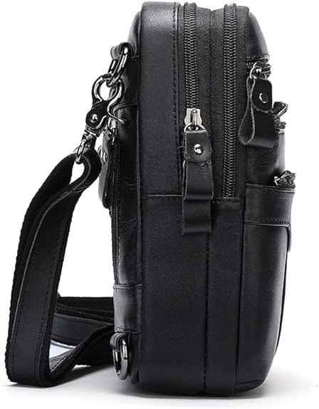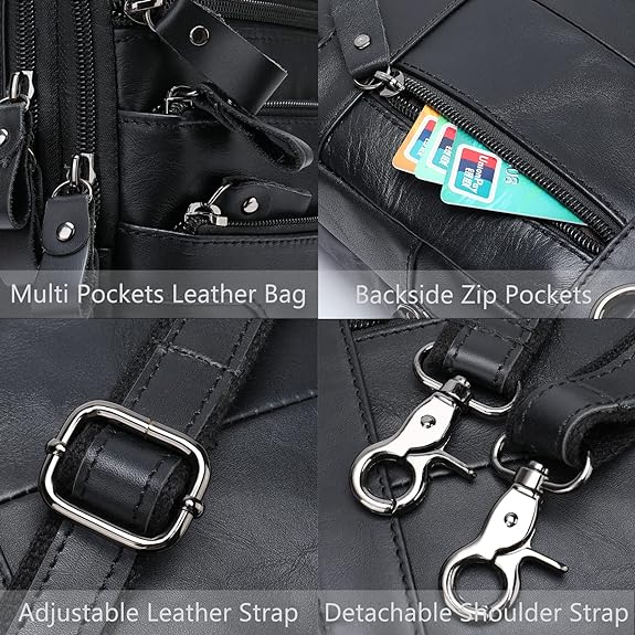 Brand New Leather Crossbody Bag with 6 Zipper Pockets, Small Messenger Bags Travel Work Side Bag