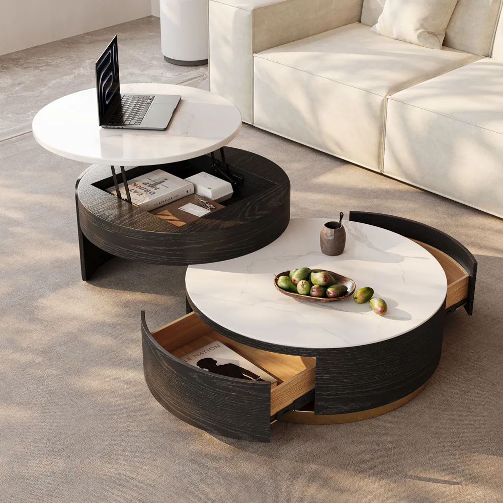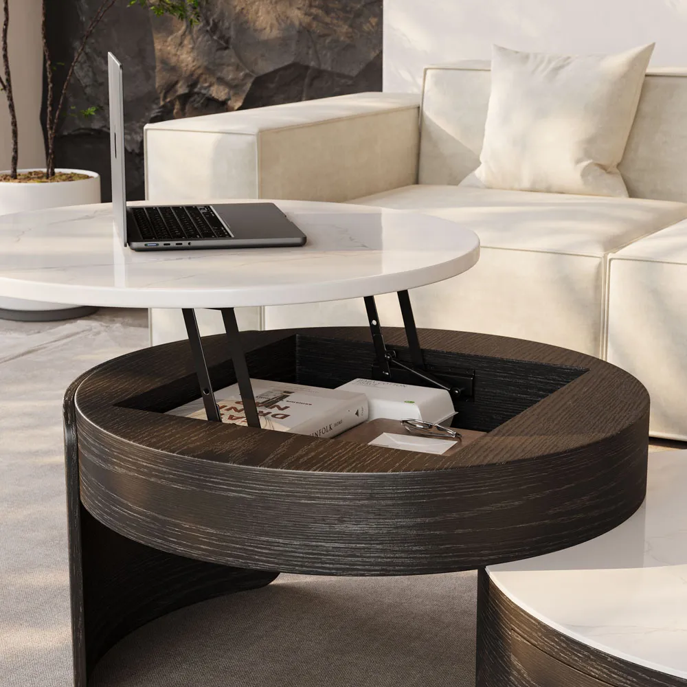 ✅Lift-Top Nesting Coffee Table Set (2-Piece):Modern and space-saving design—features a large table with lift-top storage and a smaller nesting table for flexible use.