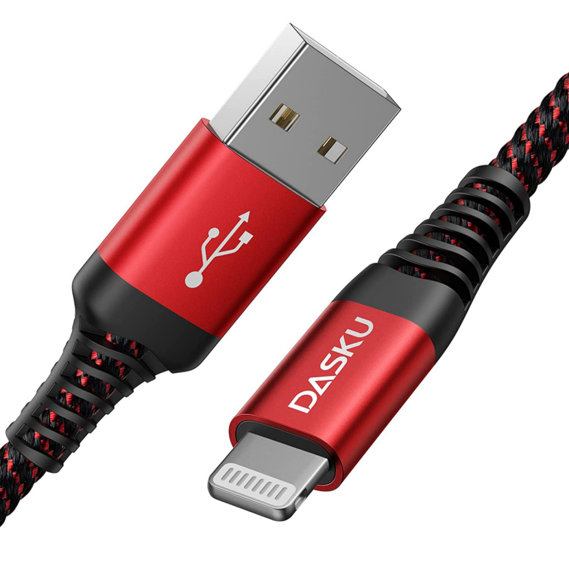 - Ultra Durable Lightning Cable Braided USB Charging Cord, Red