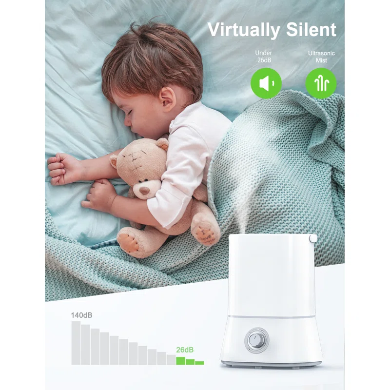 - Whisper-Quiet: Ultrasonic humidifiers operate at 26dB, perfect for a peaceful night's sleep.