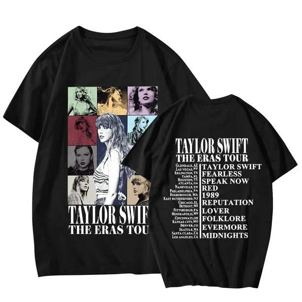 Features a classic round neck and relaxed fit with a bold graphic design inspired by Taylor's iconic eras.A must-have for music fans and fashion-forward girls.