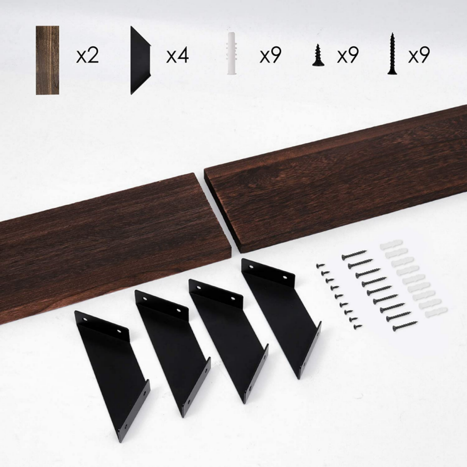 -#1, with a single plate size of 16 x 5.9 x 0.78 inches (42 x 15 x 2cm).Metal support bracket × 4, carbonized paulownia board × 2, long screw × 9, short screw × 9, plastic pin × 9. With the help of an electric drill, the installation can be completed in a few minutes.