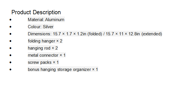 每个架子可容纳 6 至 10 件衣服,最多可承重 60 磅,折叠后最大长度可达 12.8 英寸。