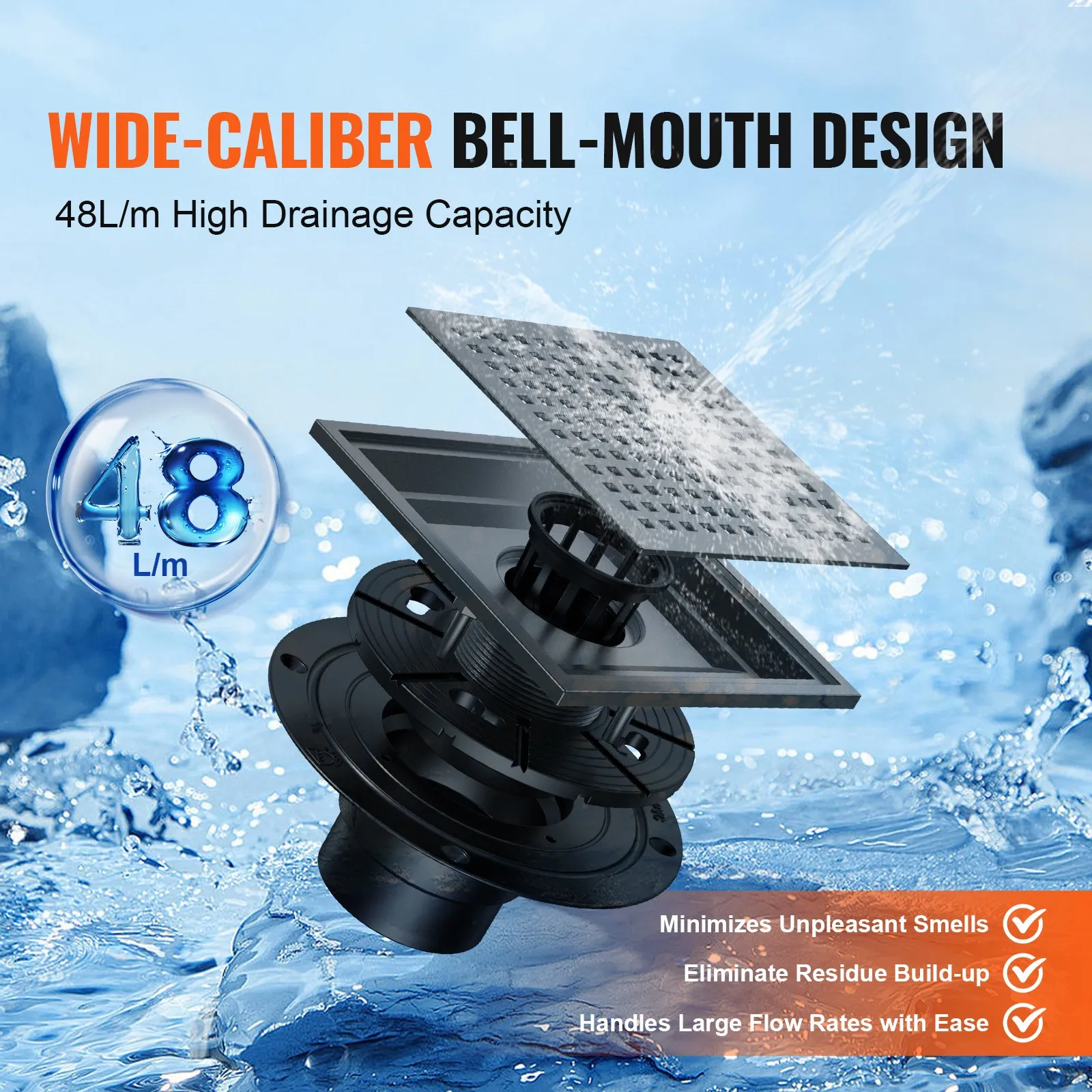 ✅ Rapid Drainage: Large-diameter bell-mouth hole; up to 48L/min flow rate handles high water flow, reduces odors/debris buildup (suitable for bathroom/kitchen).