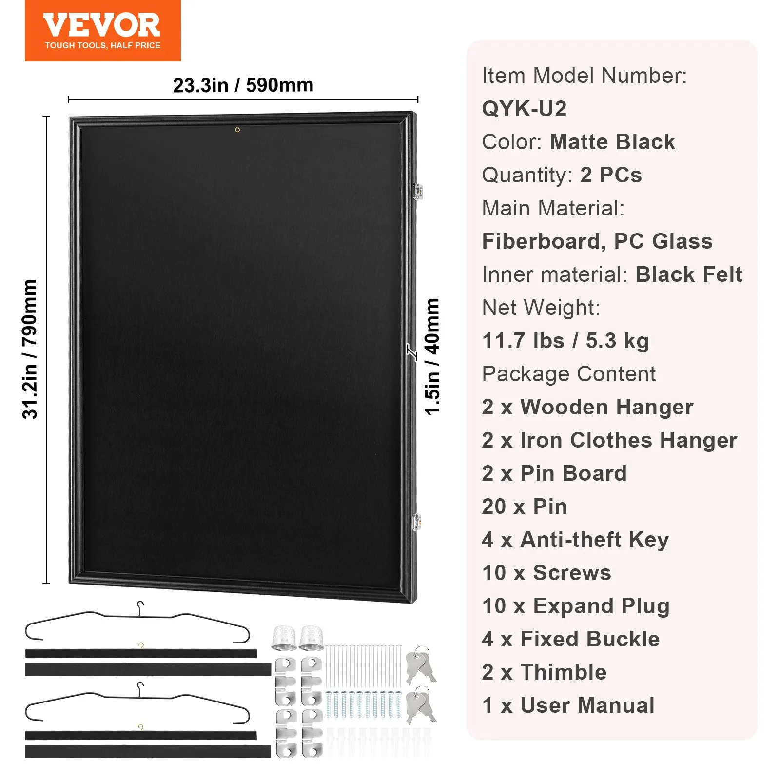VEVOR 2PCs Jersey Display Frame Case, 23.3x31.2x1.5 in, Large Lockable with 98% UV Protection