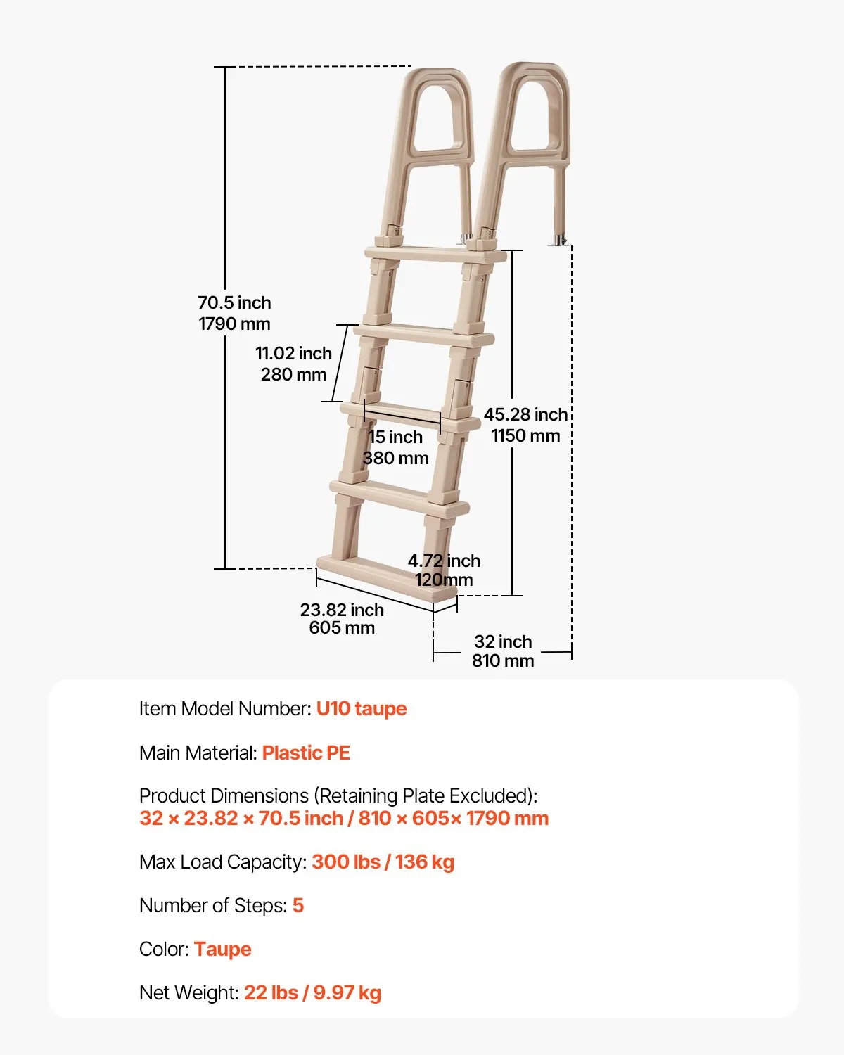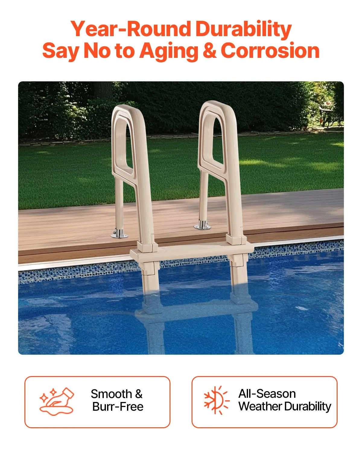 ✅ 5-Step & Double Handrails: Features 5 steps (textured for anti-slip, even underwater) and double handrails on both sides.Prevents slips/accidents; ideal for 48-54 inches in-ground & above-ground pools.