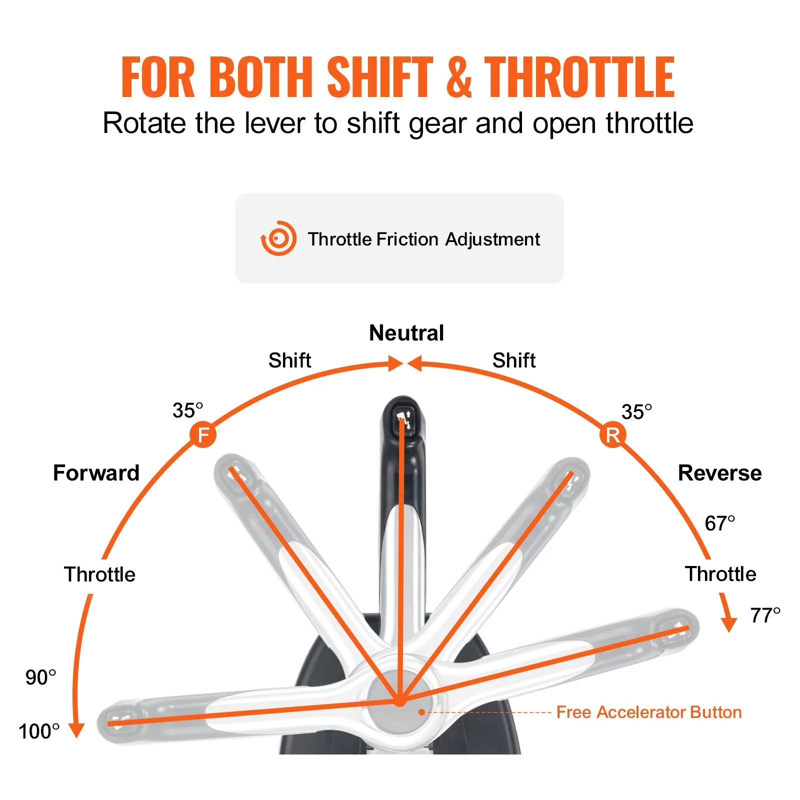 ✅Smooth Gear Shifting:Neutral release button and friction adjustment knob for precise throttle control. Forward/reverse gear shifts at 35° angles. Free accelerator allows warm-up in neutral.
