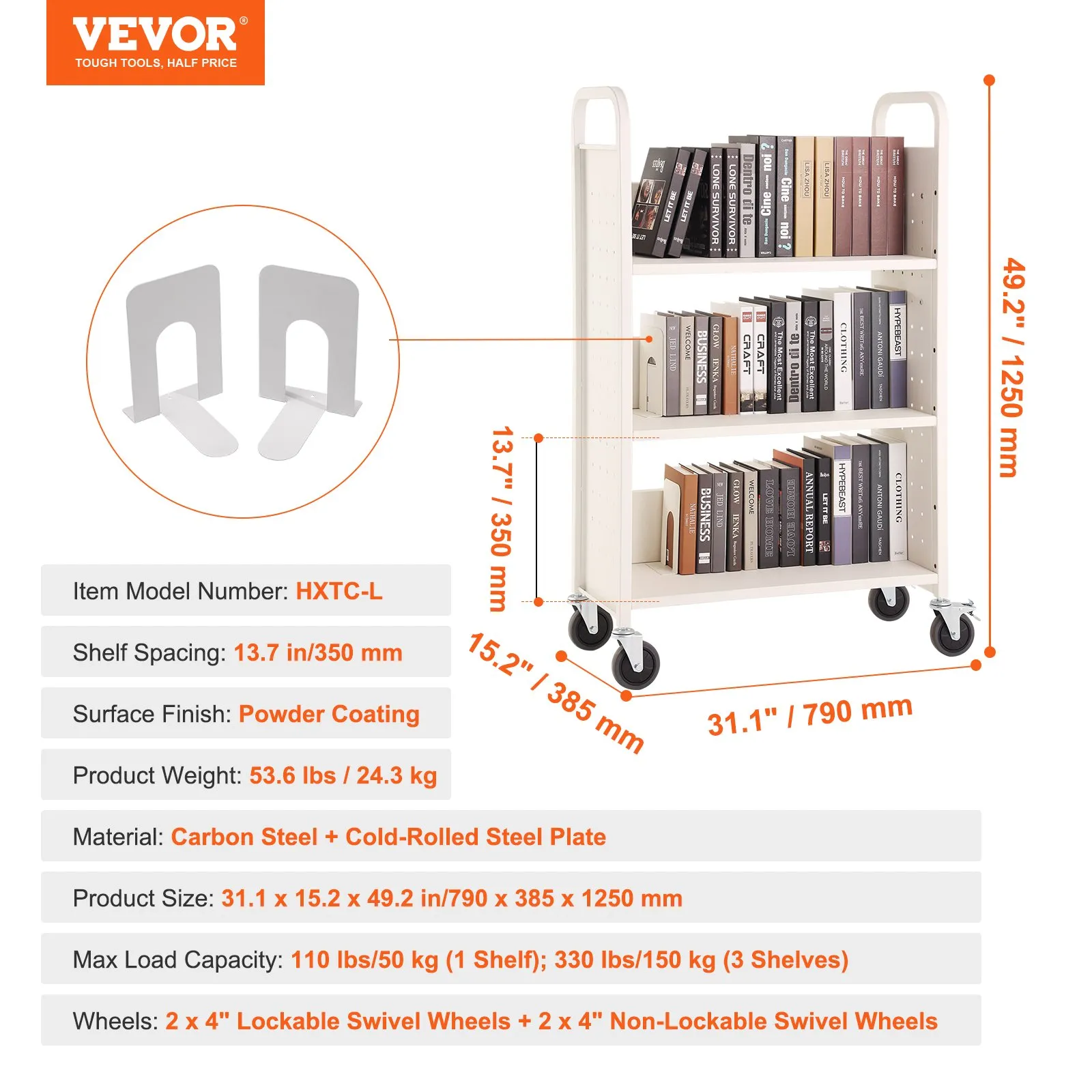 ✅Heavy-Duty Capacity: Made of durable carbon steel, this book cart holds up to 330 lbs (150 kg) with stability and long-lasting use.