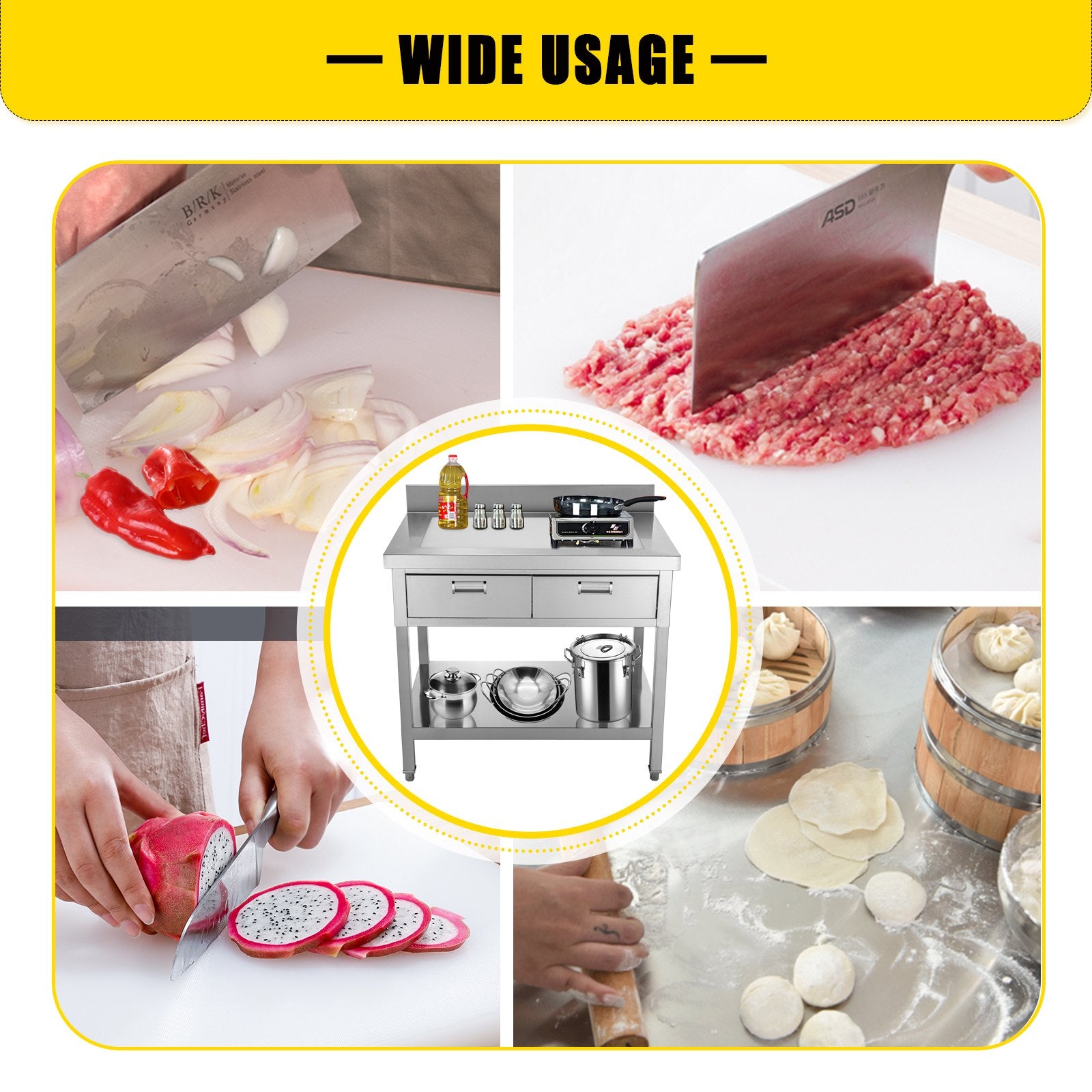 VEVOR Commercial Worktable Workstation 24 x 36 Inch Commercial Food Prep Worktable with 2 Drawers,