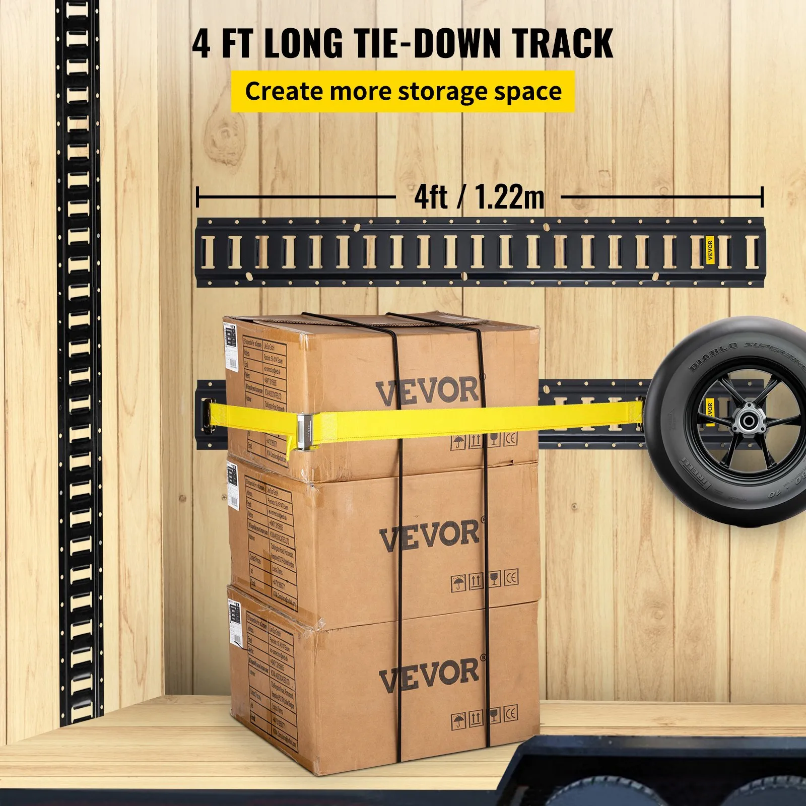 ✅ Secure Your Cargo: VEVOR's E-track tie-down rails are perfect for securing cargo on the move.Use them with ratchet straps, D and O rings, hooks, etc. to hang bikes or other items, whether on walls or floors.