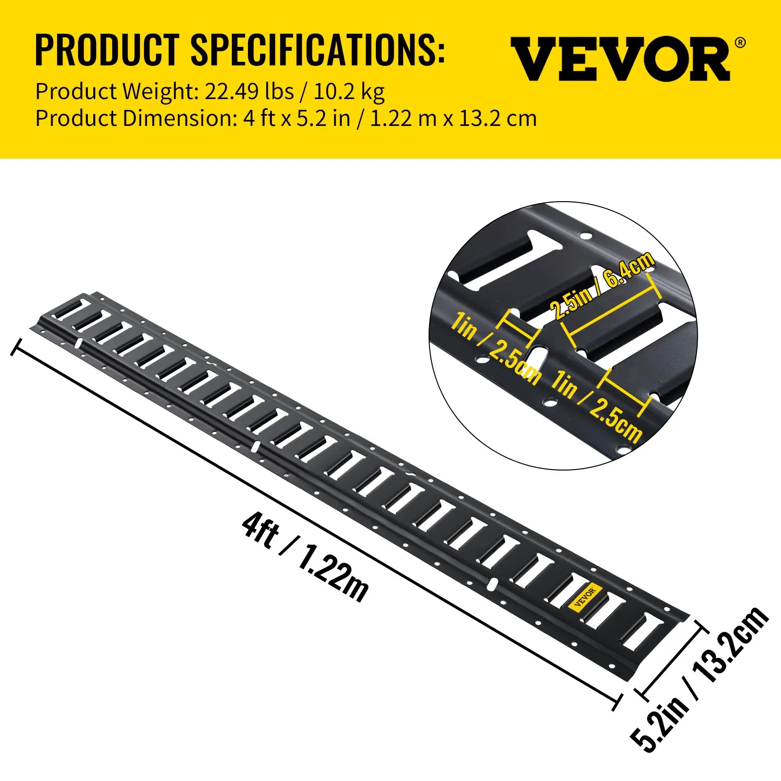 ✅ Rail Length4 ft / 1.22 mRail Width5.2 in / 132 mm