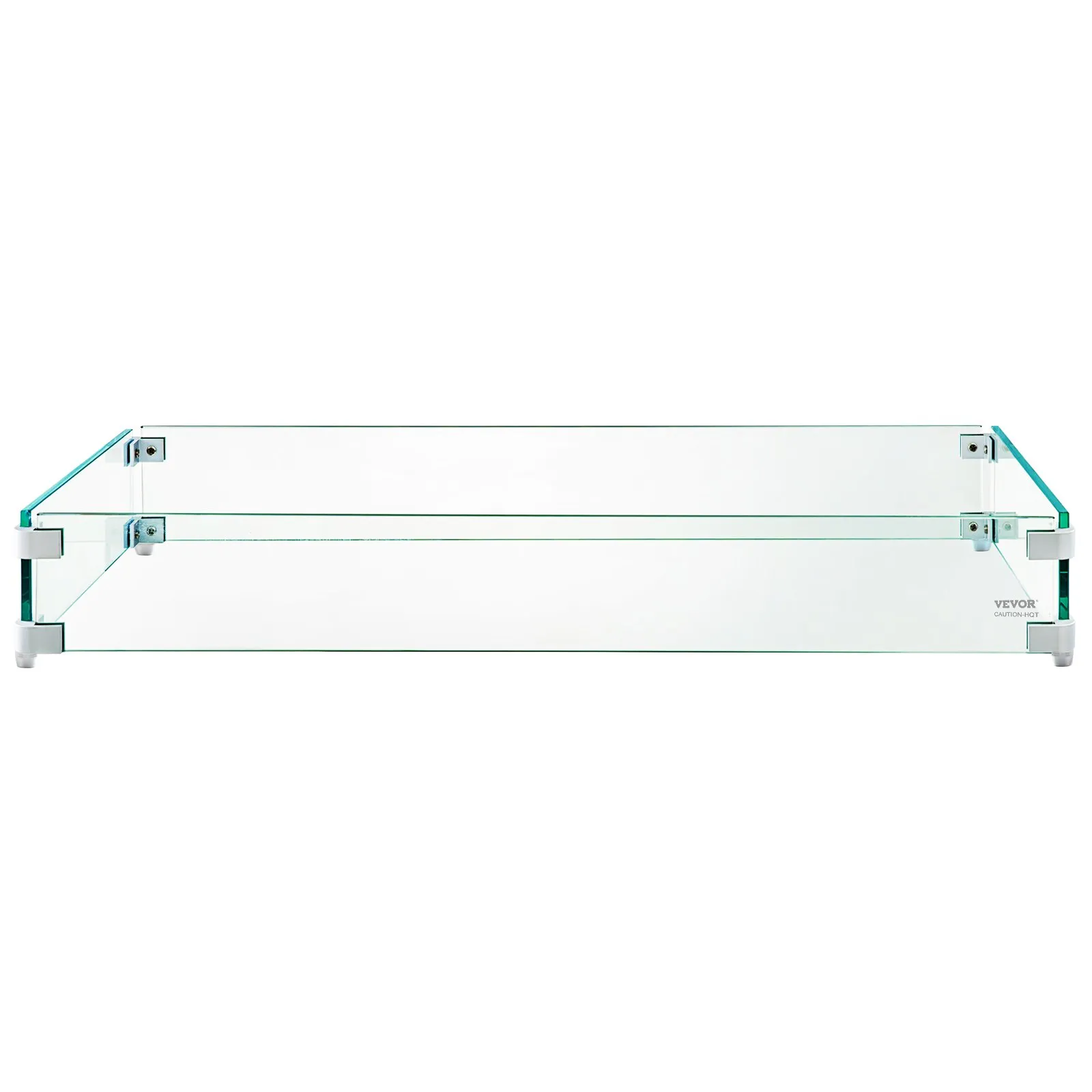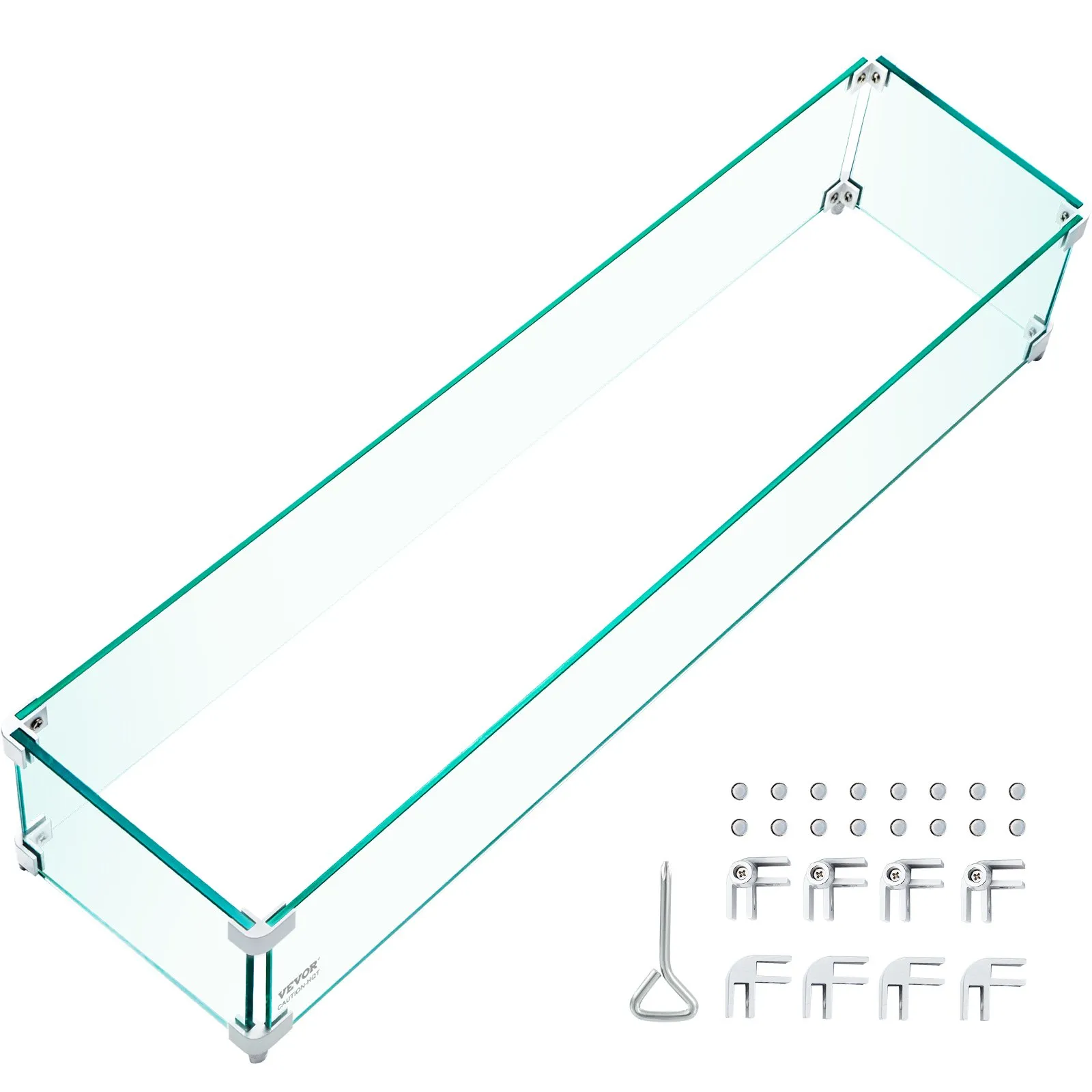 VEVOR Fire Pit Wind Guard, 43.5 x 17.5 x 6 Inch Glass Wind Guard, Rectangular Glass Shield,-$60
