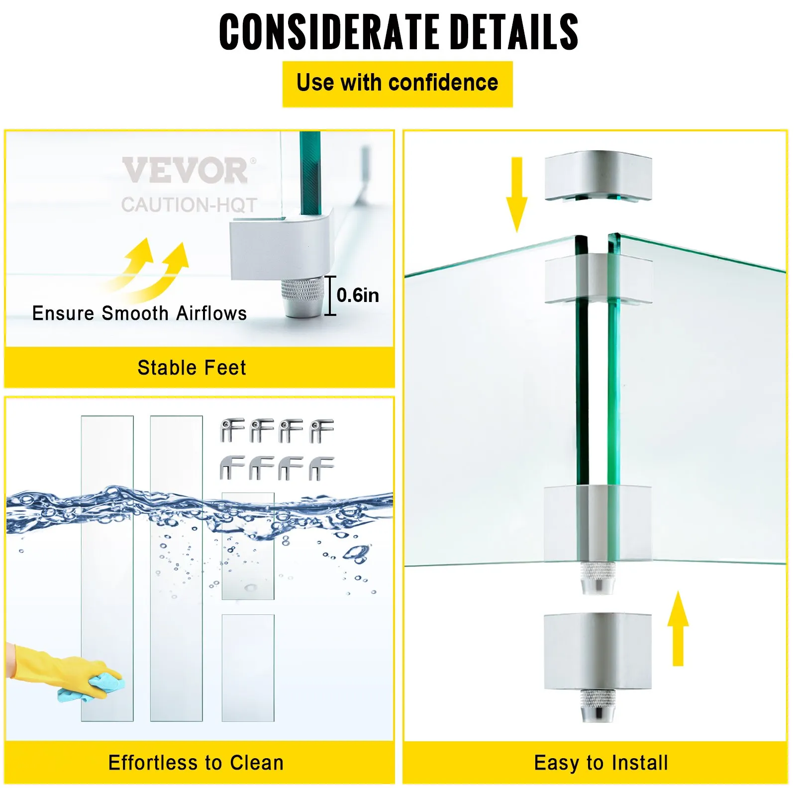 ✅ Durable Construction: Made of heavy-duty tempered glass (0.3" thick) with polished edges for long-lasting use.Aluminum brackets provide firm connection and support.Premium material outlasts ordinary glass.