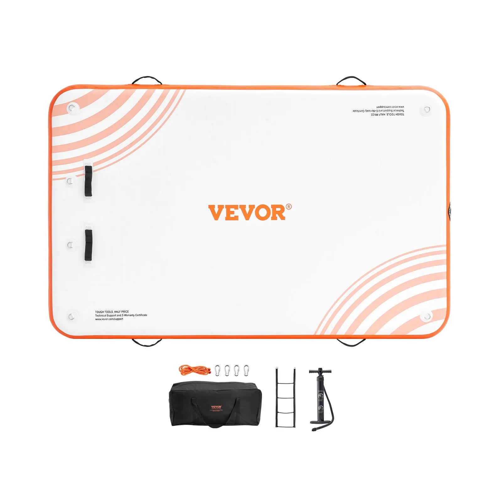 ✅ Pleasant & Safe Water Use: VEVOR inflatable floating dock made of 2700g/㎡ high-density PVC (non-slip, durable); includes dual-action hand pump with pressure gauge for quick, easy inflation/deflation.