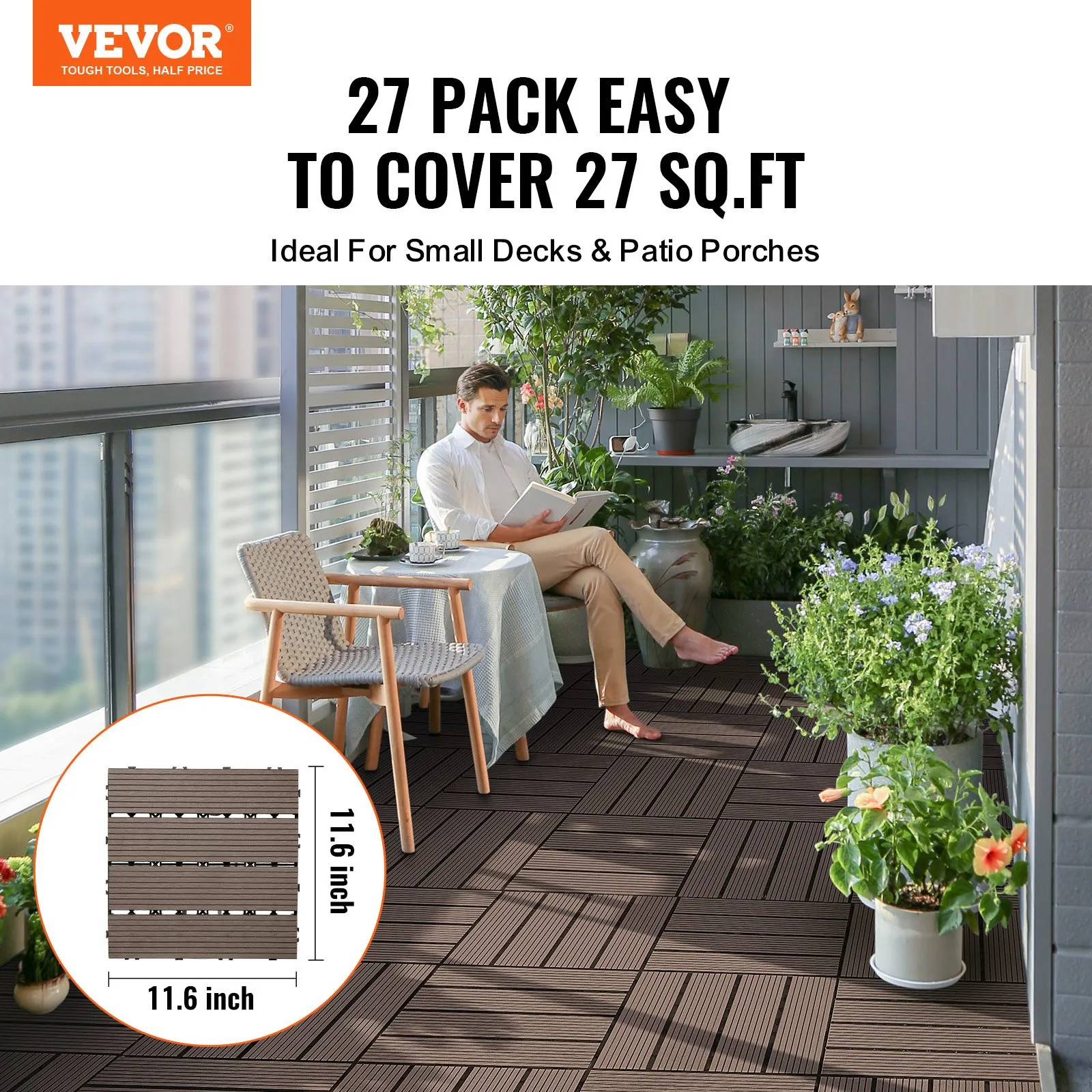 VEVOR Interlocking Deck Tiles Plastic Wood, 27 Pack,12"x12" 27 sq. ft All Weather Outdoor Flooring