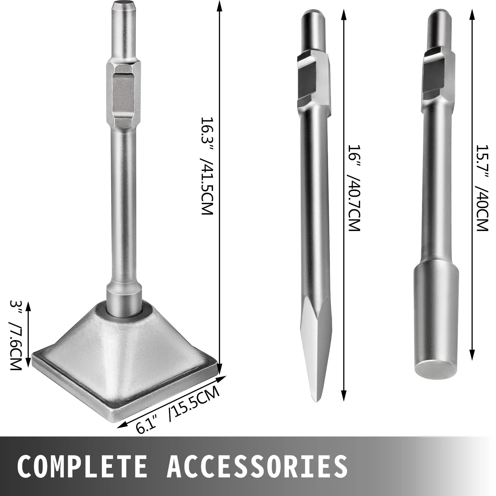 ✅1-3/16" Hex Shank & 2 Chisels: VEVOR tamper shank/plate fits hammers with 1-3/16" (30mm) hex shank locking system; extra point chisel breaks stubborn materials easily.