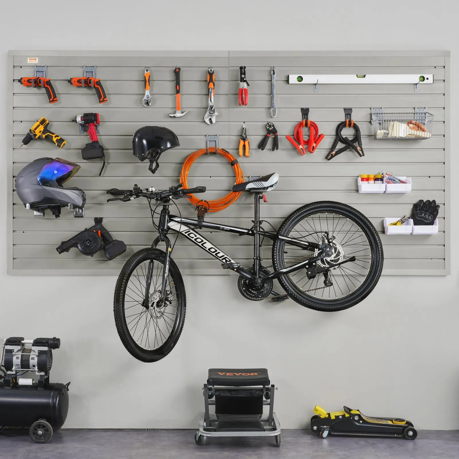 ✅ Versatile Use: 8 panels with assorted hooks (single, double, J-hooks) suit garages, shops, craft rooms, and factories .