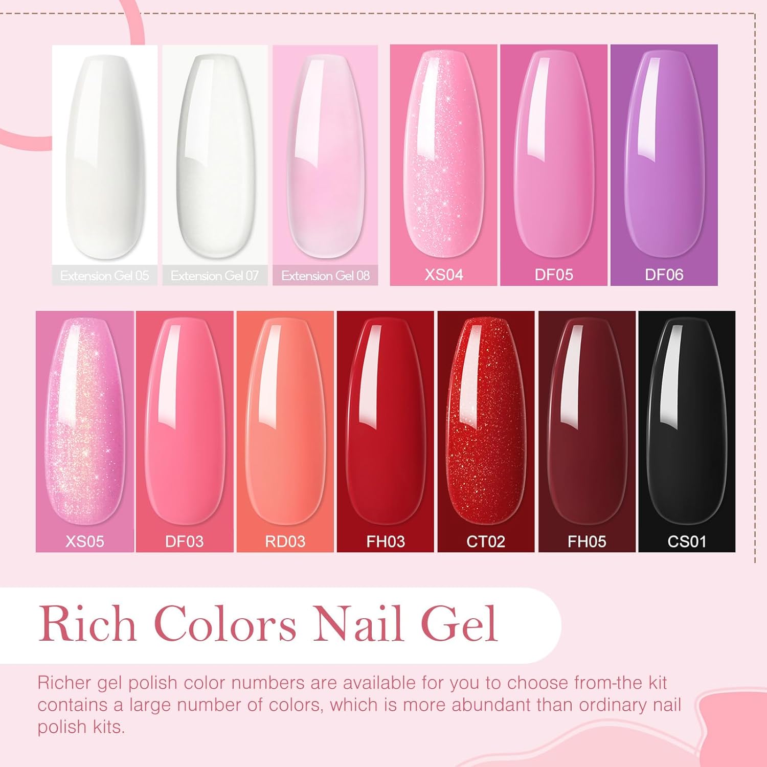 ✅ Gentle, Vibrant Gels,10 spring-summer gel polishes + 3 poly extension gels, formulated without harsh ingredients. Resists yellowing and dullness for clear, trendy shades suitable for all seasons.