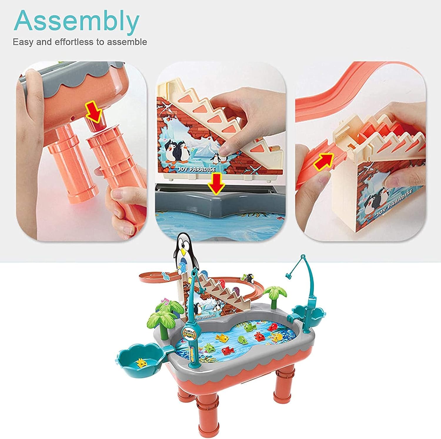 ✅ With Sounds & Lights - Once you turn on this electronic toy, the beautiful music and bright lights will attract the attention of your little one. And this fishing play center or fish game table also features the water-adding and a powerful motor, which promotes water circulation.