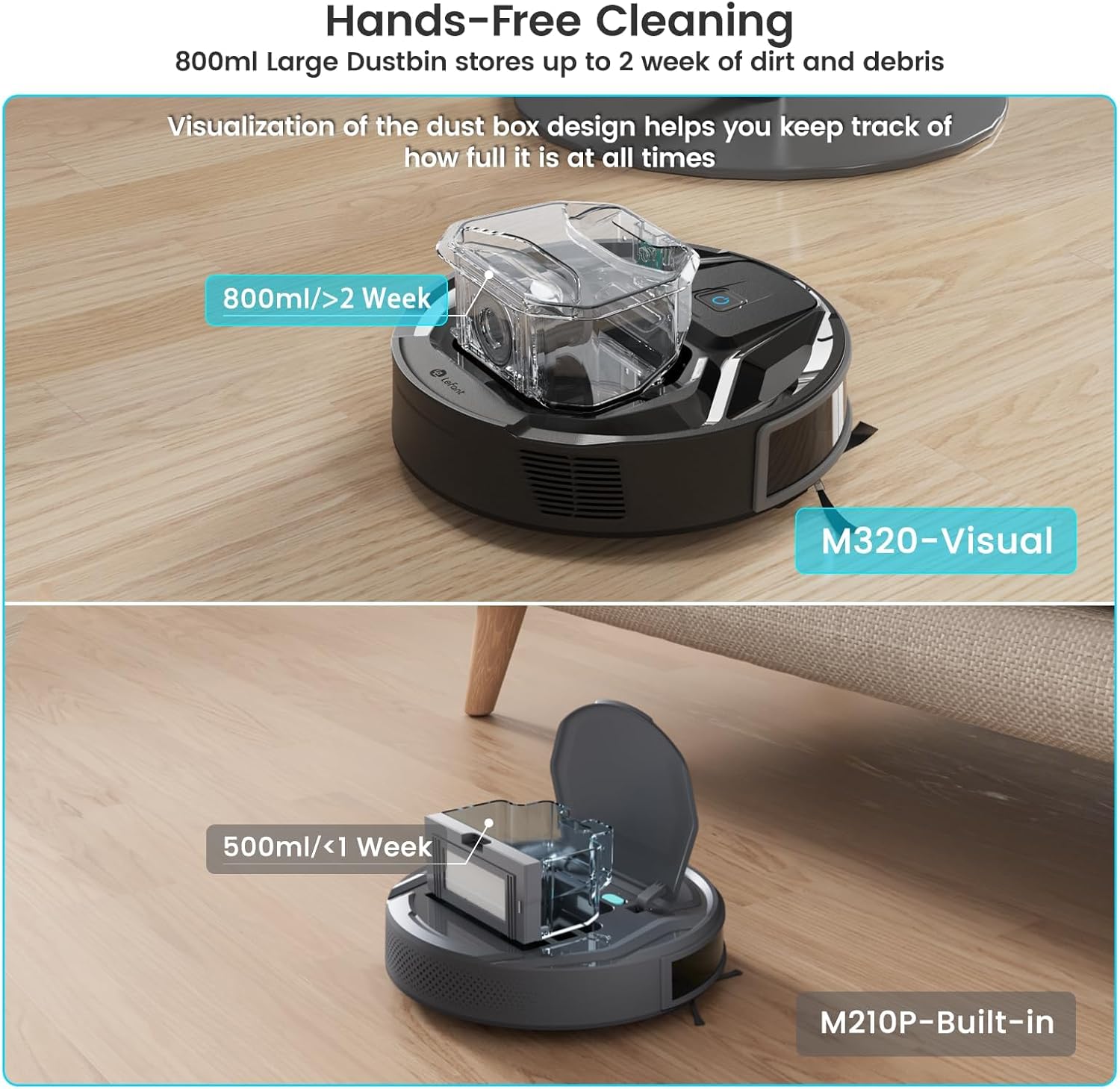✅ Lefant M320 robot vacuum with 6000Pa suction cleans 50% more efficiently, easily picking up dust, pet hair and debris on hard floors and low-pile carpets.