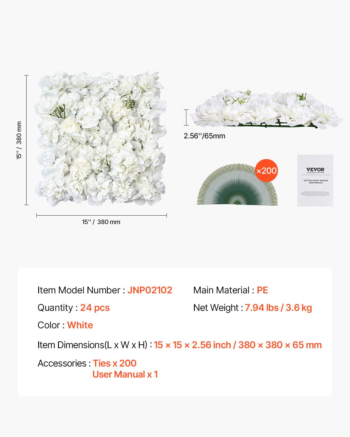 VEVOR 3D Flower Wall Panel, 24 PCS 15 x 15 inch, Artificial Floral Wall Background Mesh Backing Mat,-$95