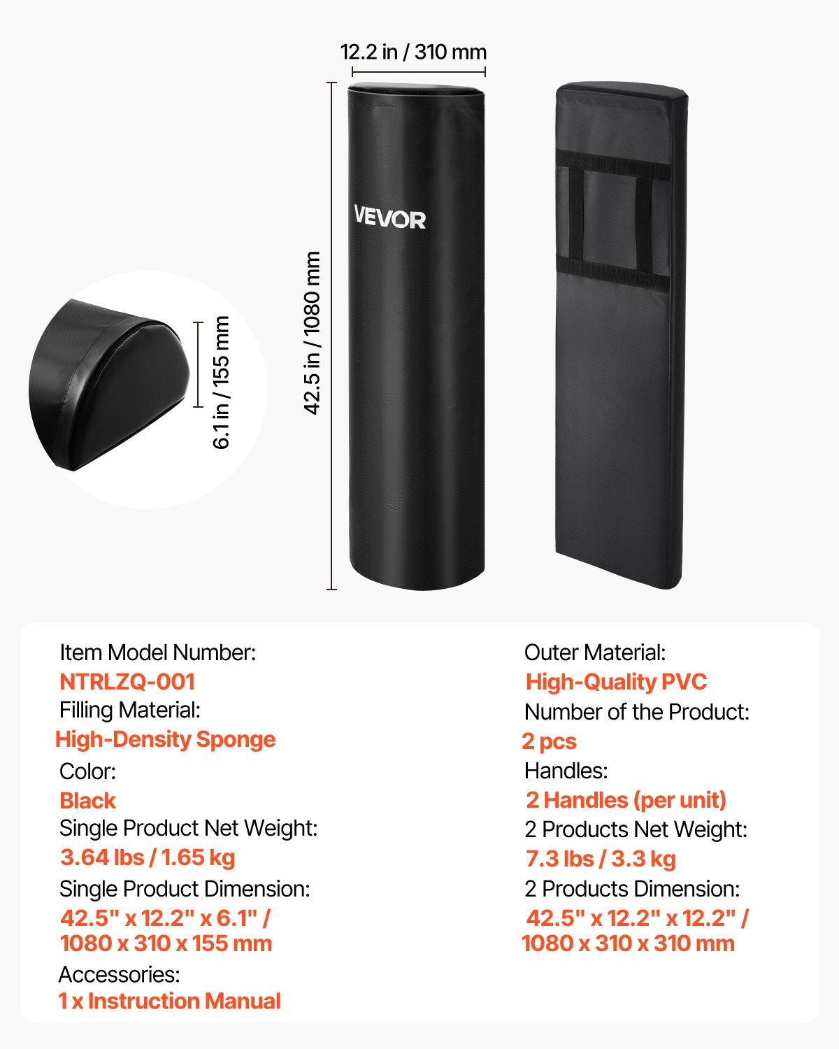 ✅ Ideal Training Size: Measures approximately 42.5x12.2x6.1 in (1080x310x155 mm), perfect for realistic training, ensuring targeted, effective workouts.